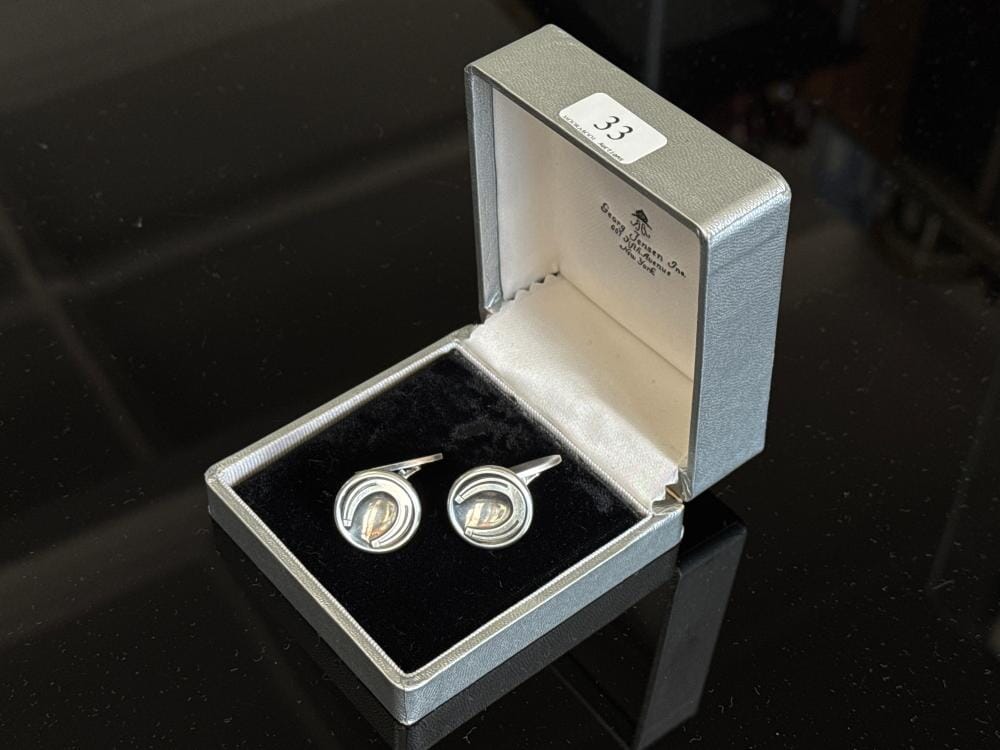 Pair of George Jensen ‘Horseshoe’ Sterling Silver cufflinks with original box, mid-20th c.
