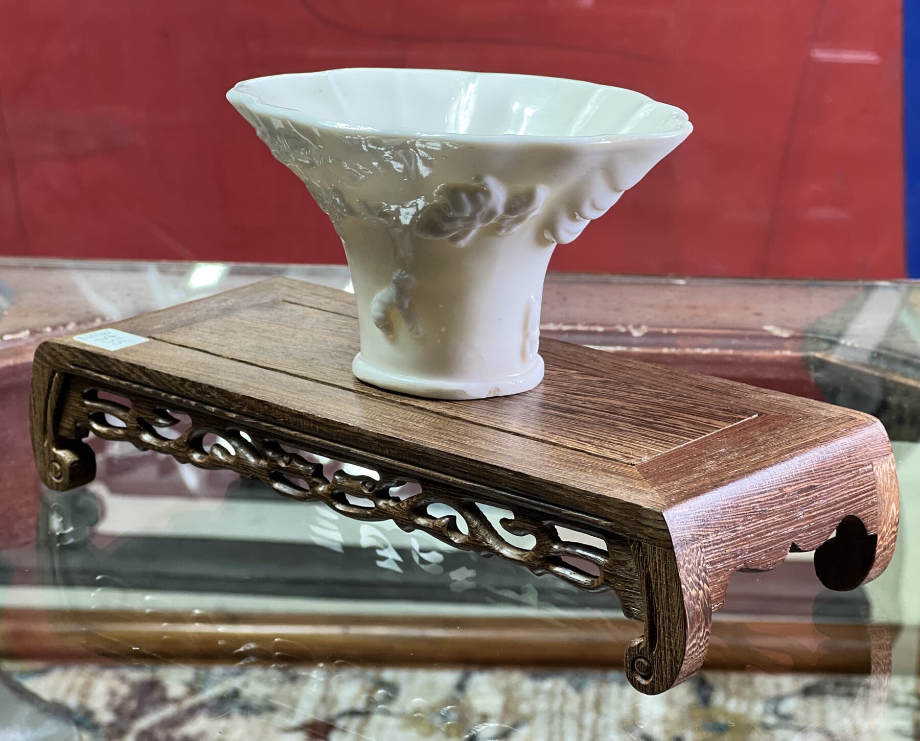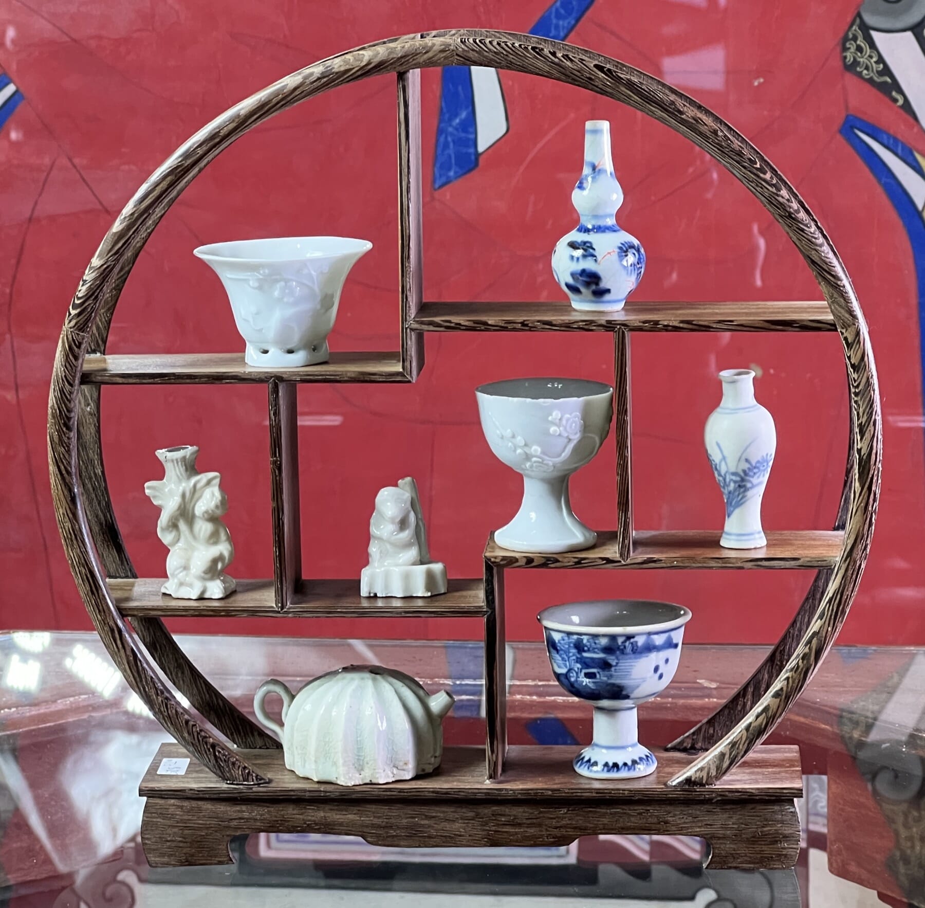 Chinese Hardwood -NEW- snuffbottle stand, moon form, 30cm high