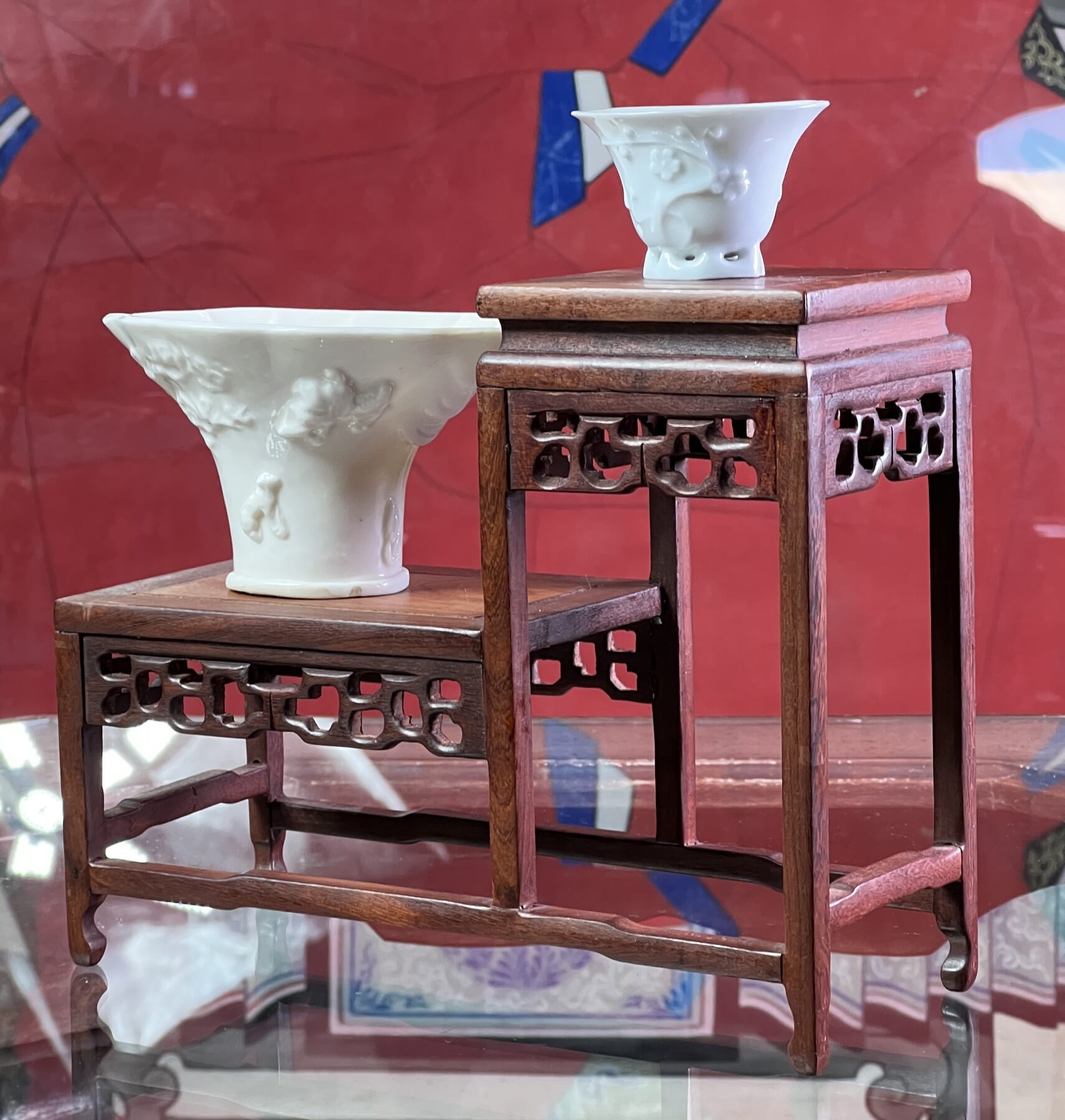 Chinese Hardwood -NEW- stand, double table form 18.5cm high