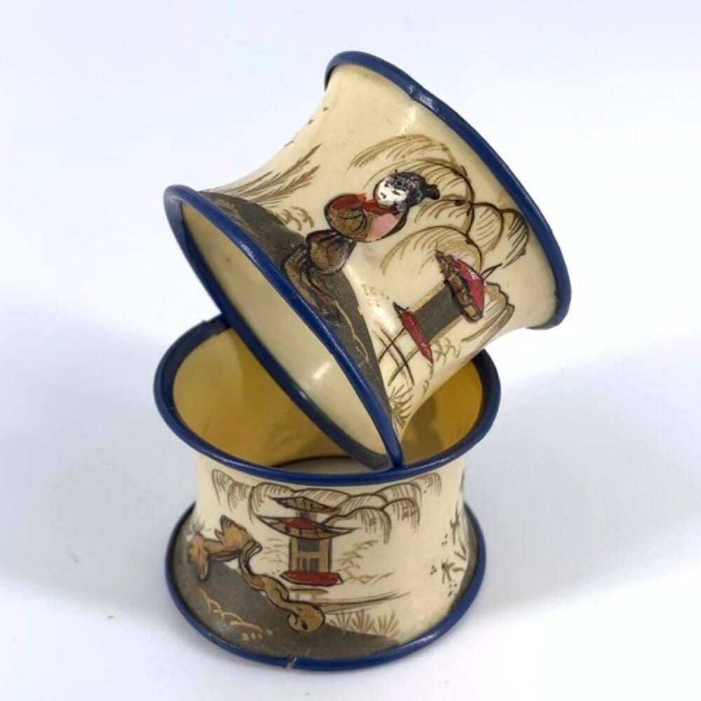 Pair of celluloid napkin rings, chinoiserie decoration, early 20th C