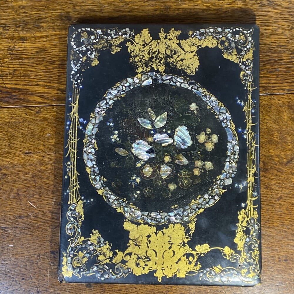 Victorian Paper Maché blotter, gilt & inlayed mother of pearl, c. 1850