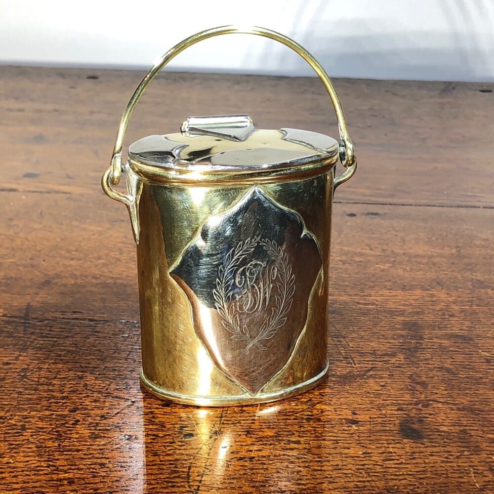 Brass & silver small tobacco box, ‘BW’, c. 1850