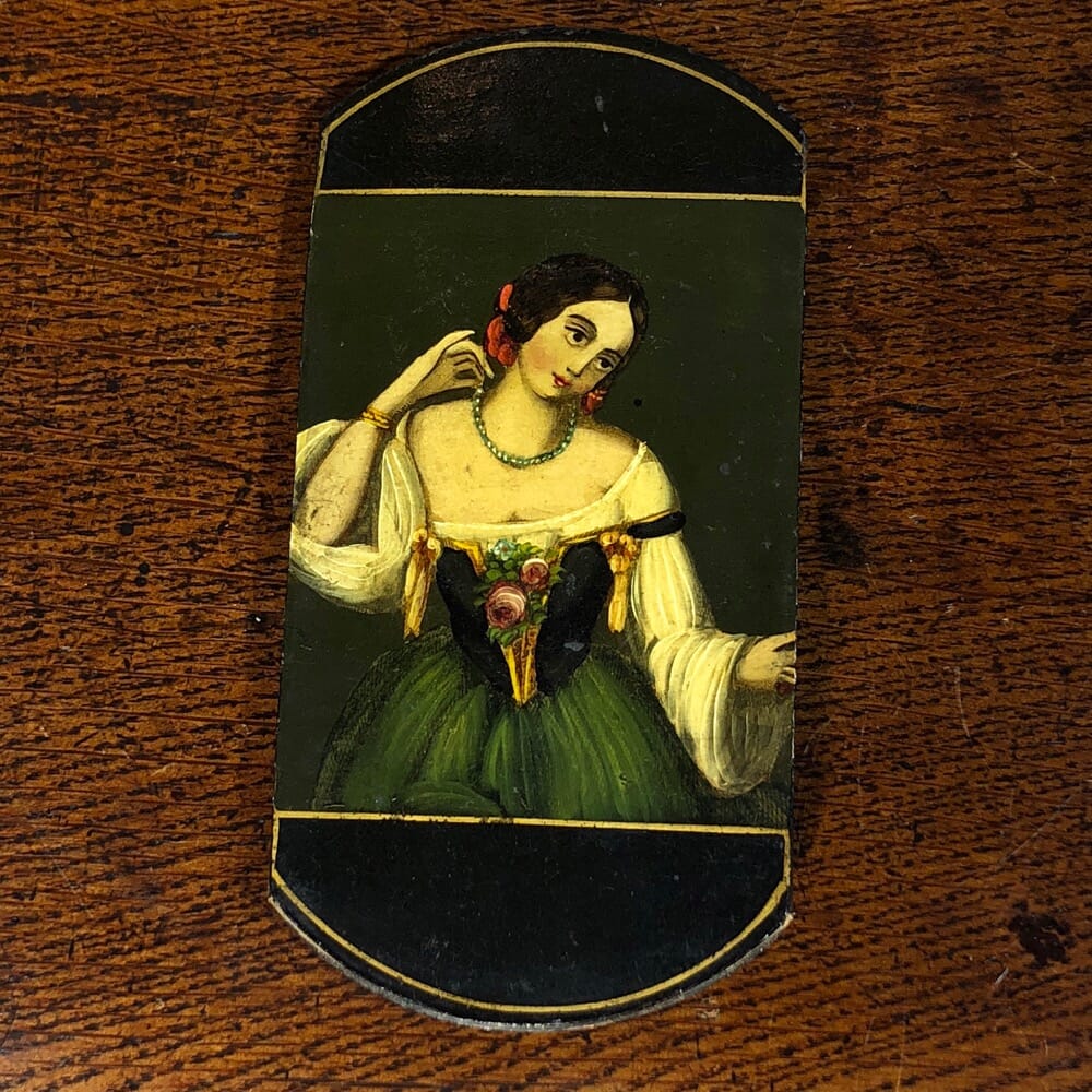 Papier mache tray, painted portrait of a peasant, c. 1860,
