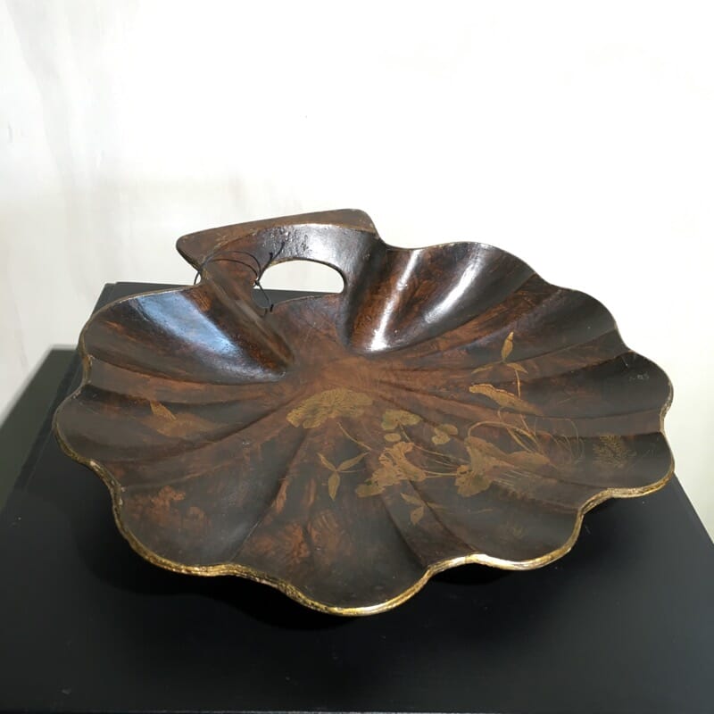 Victoria papier maché crumb tray, bird and water Lilly decoration, c. 1880
