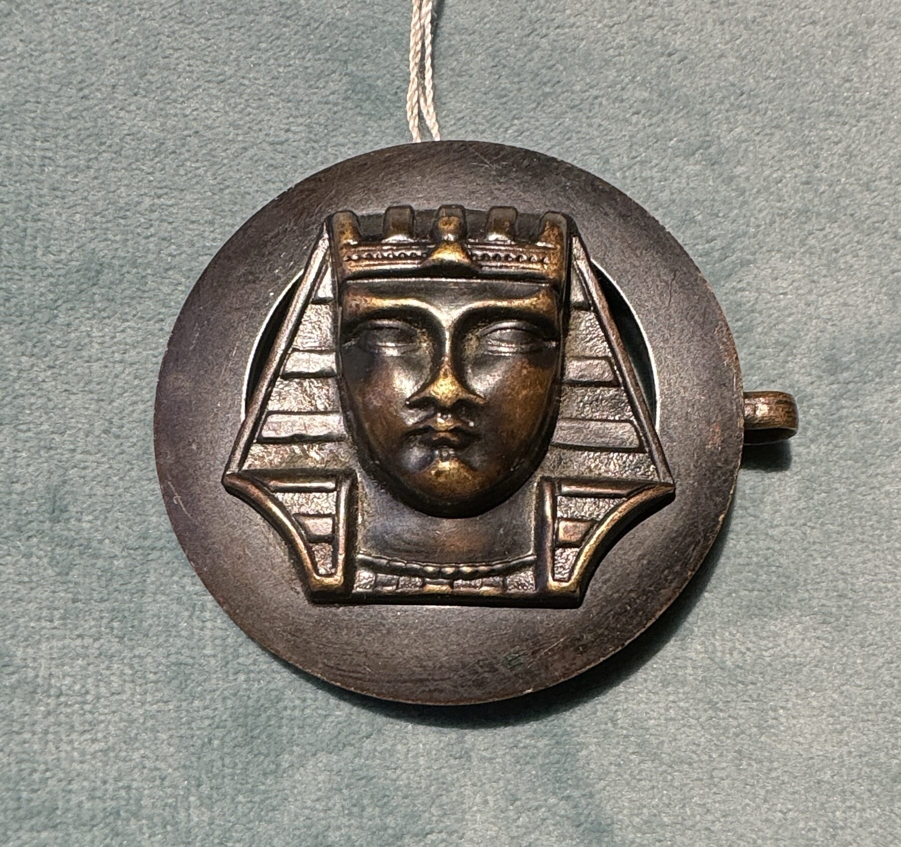 Egyptomania patinated brass belt buckle, Pharaoh’s head, c. 1925