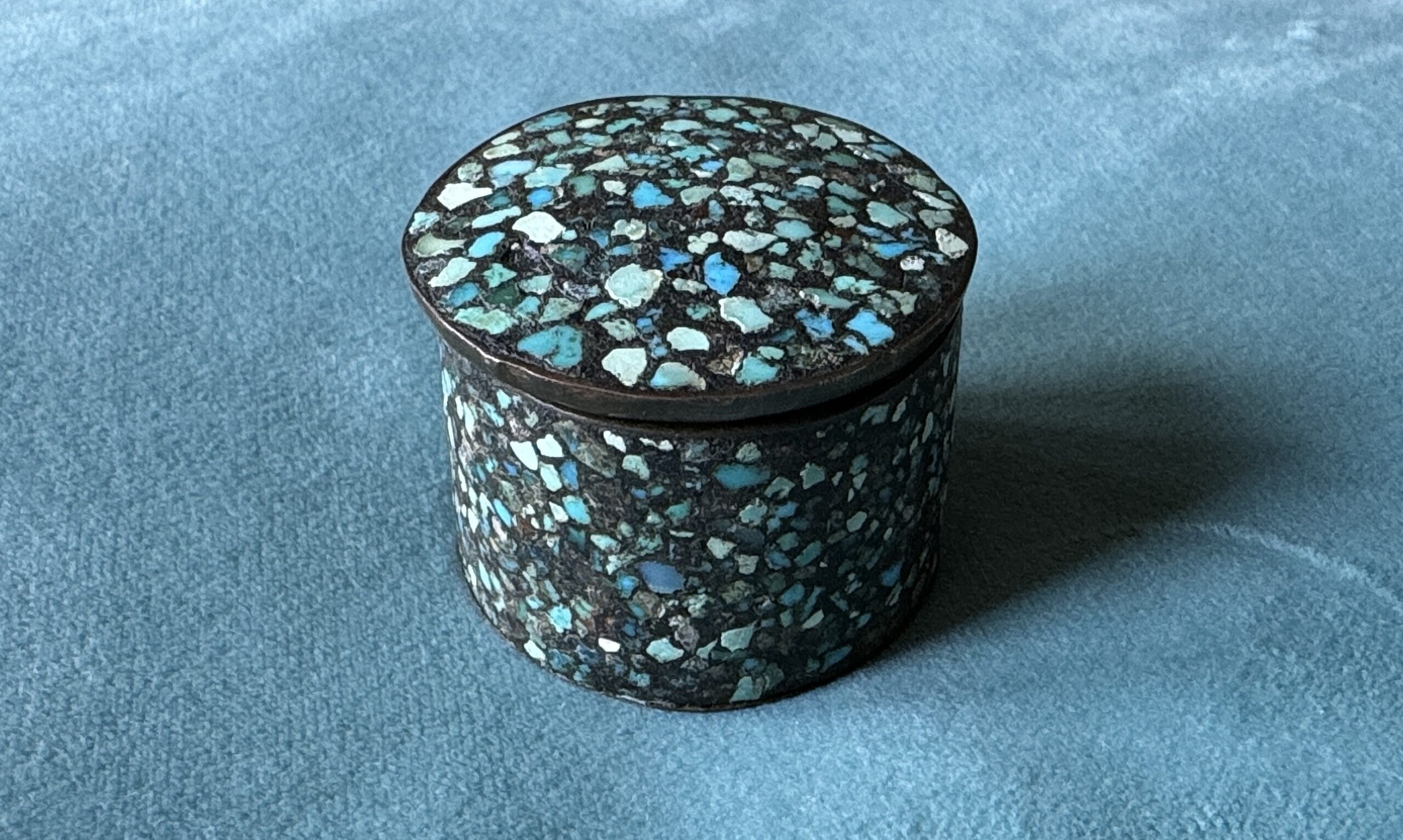 Small metal box with natural turquoise stone mosaic inset, c. 1920