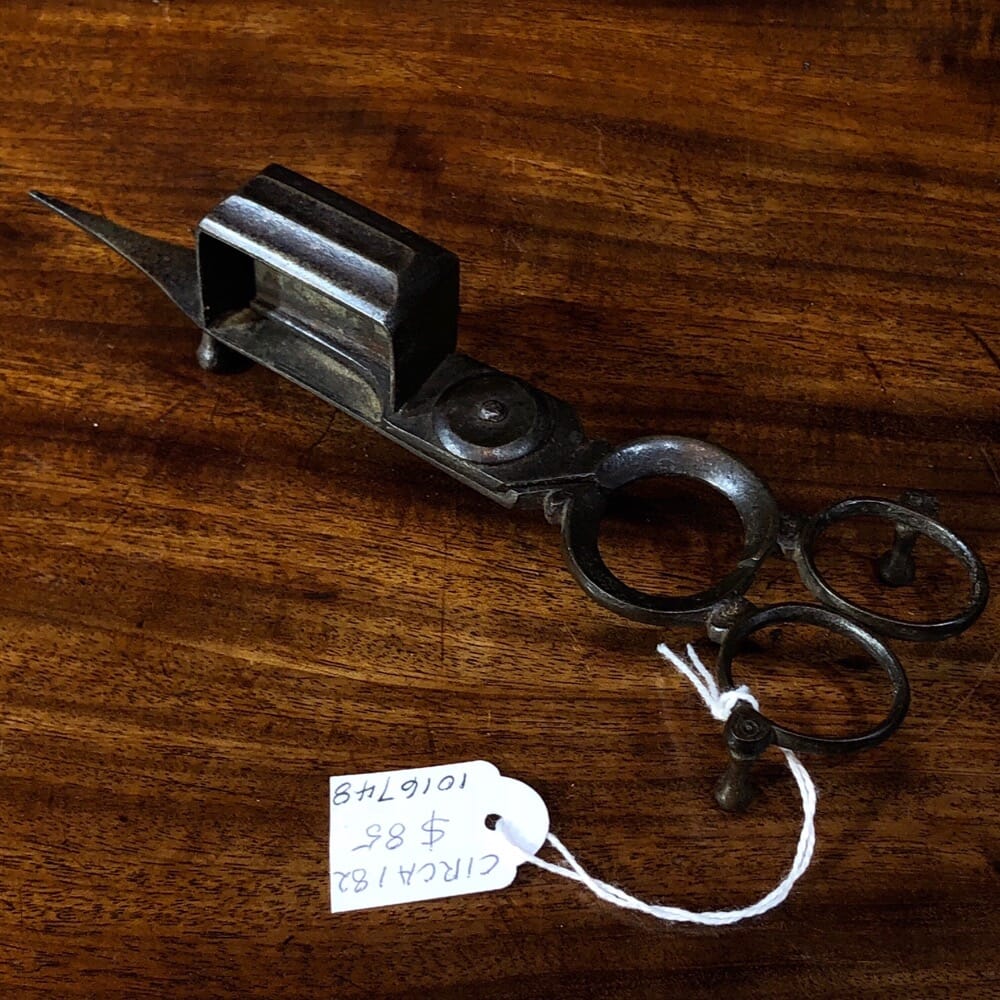 Late Victorian iron trivet, unusual willow pattern, registration for 1895