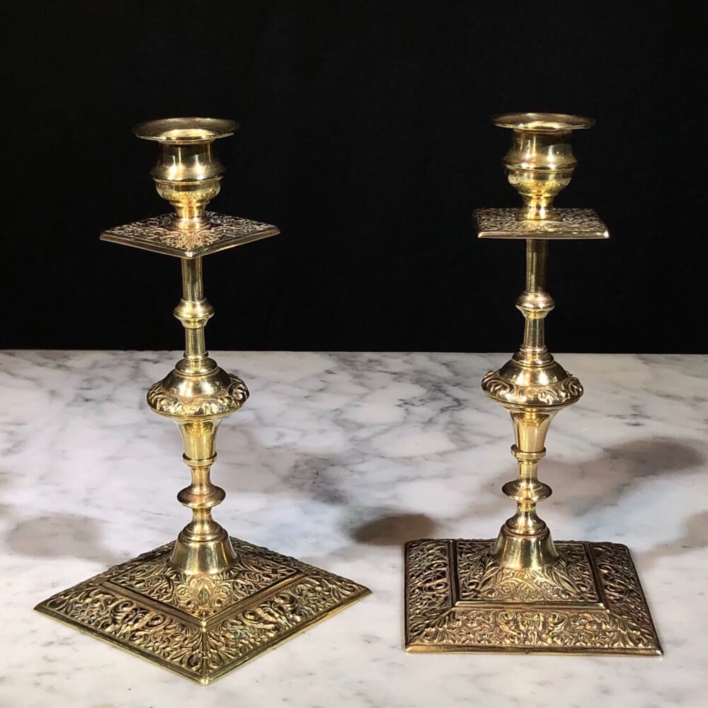 Pair of French brass candlesticks,square moulded bases, c. 1860