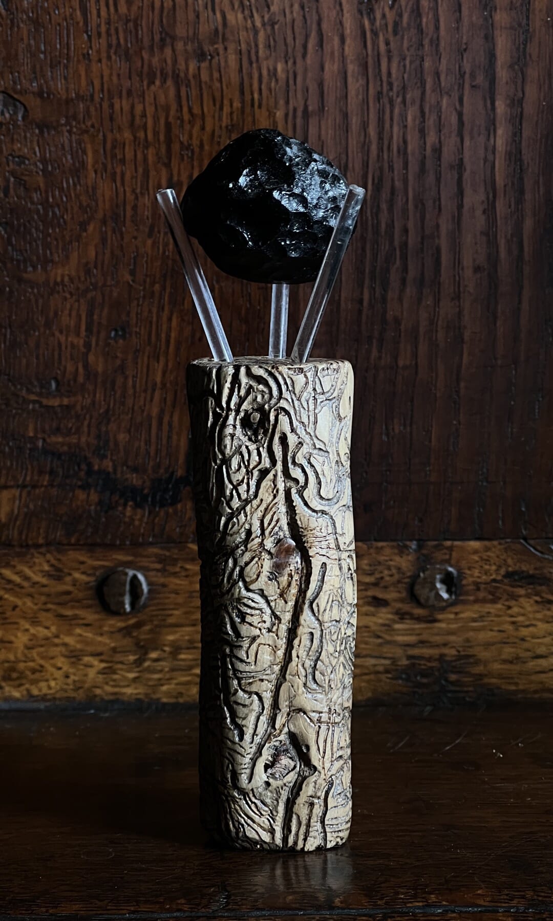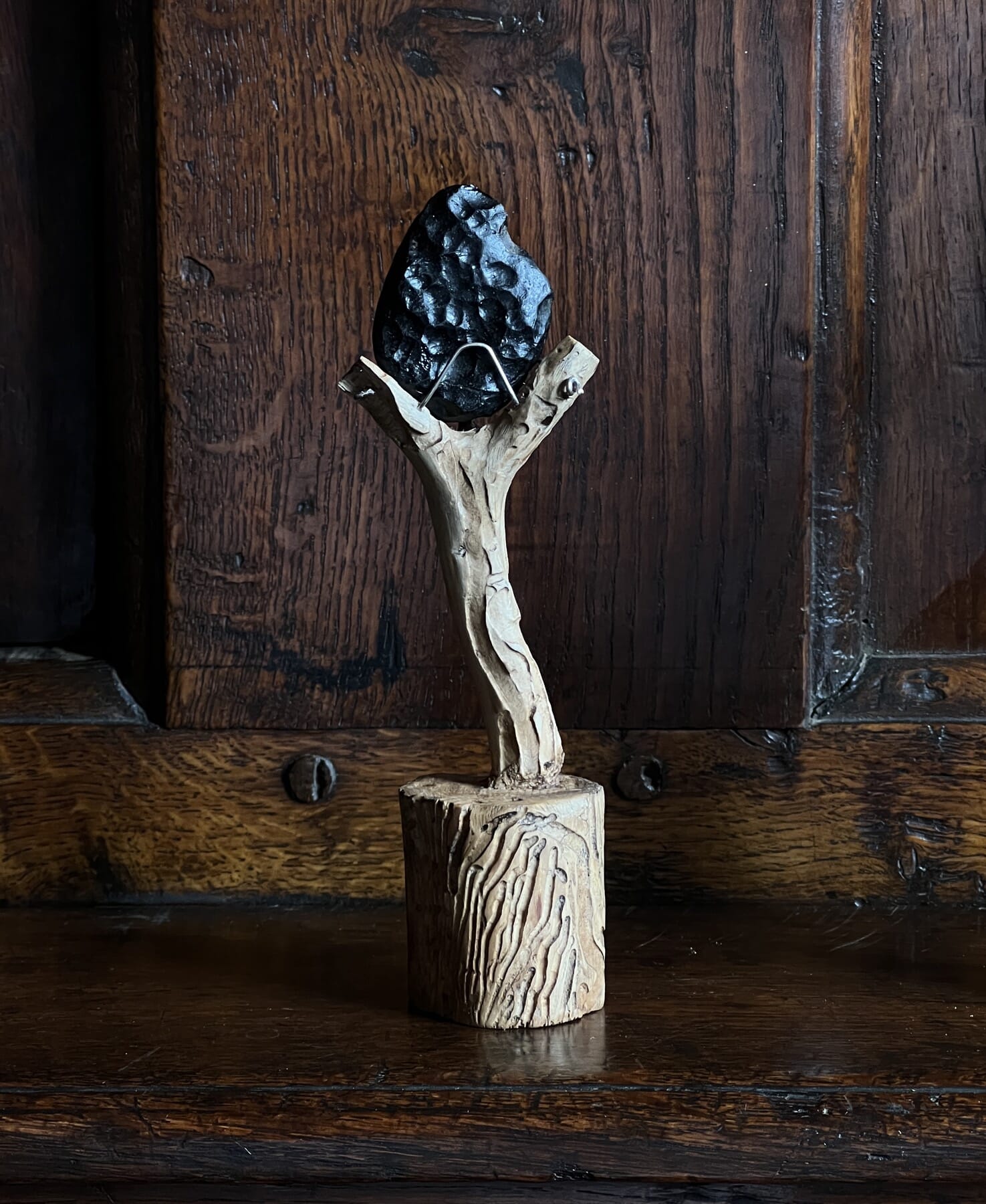 Falling Star – Indochinite tektite, teardrop form, on wood stand