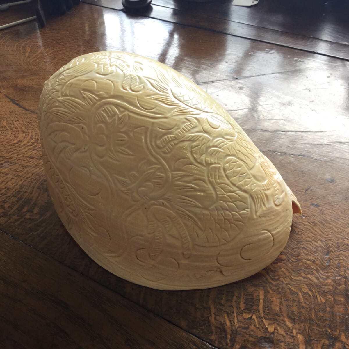 Chinese ‘melon shell’ with carved dragon design, c. 1920