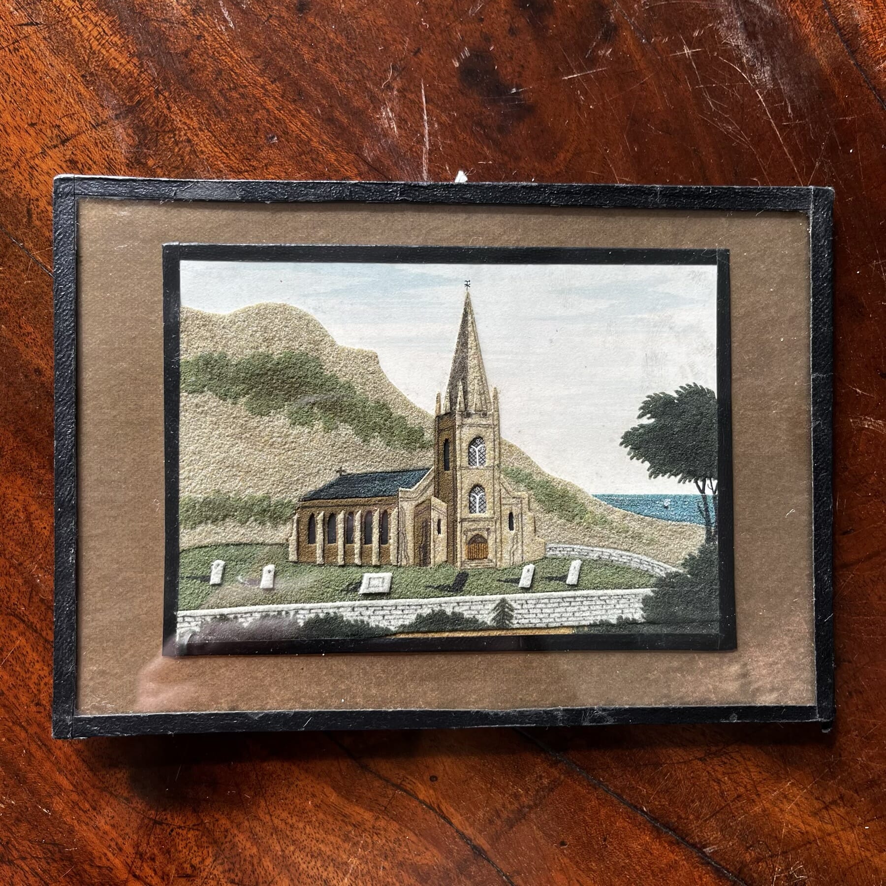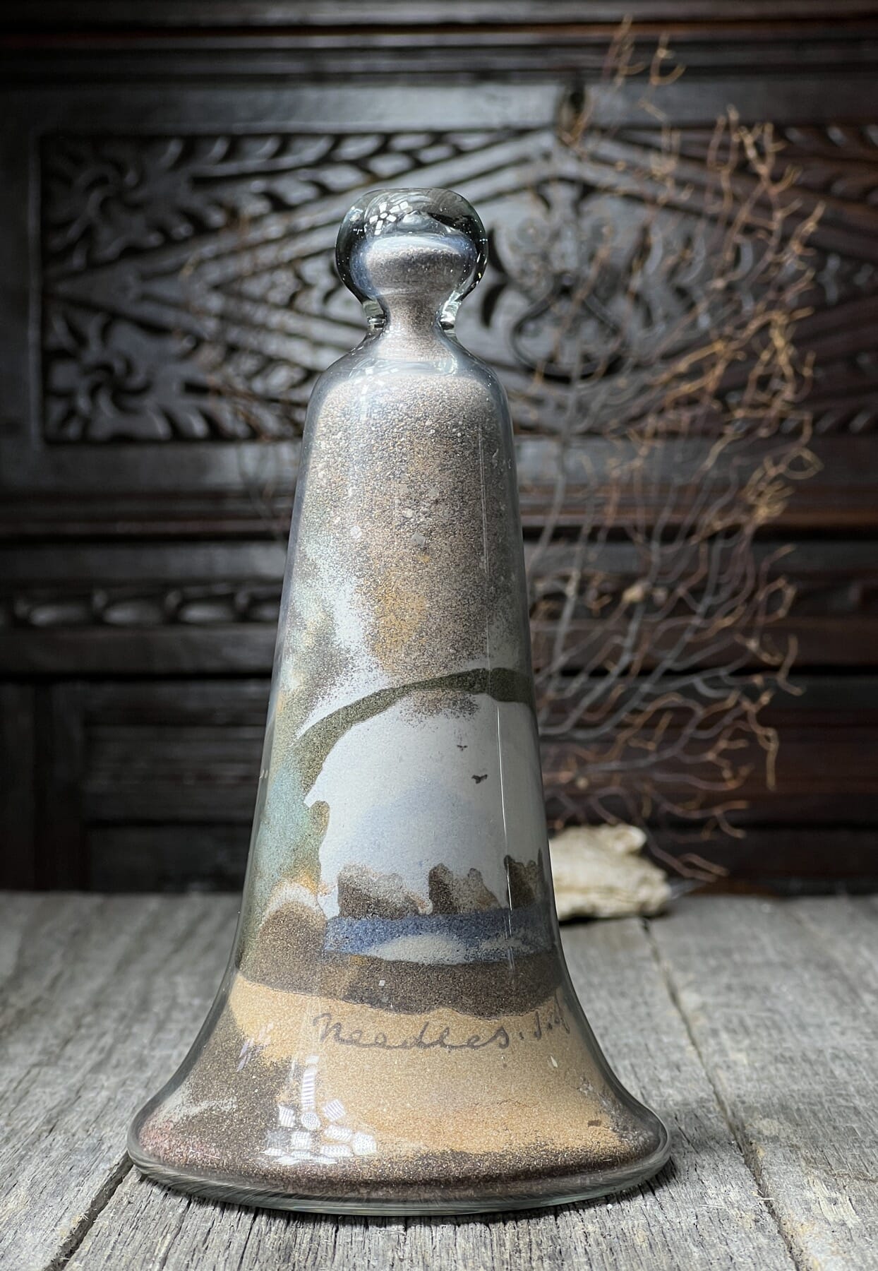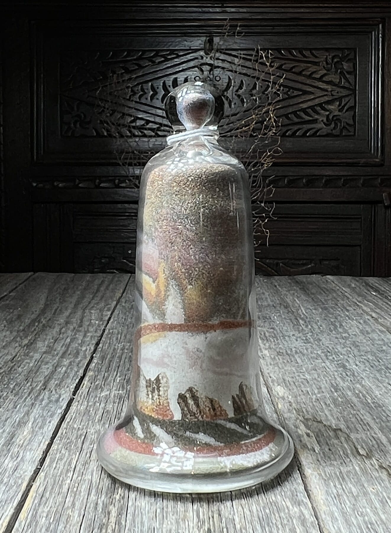 English sand picture souvenir paperweight, Needles, Isle of Wight, c. 1900