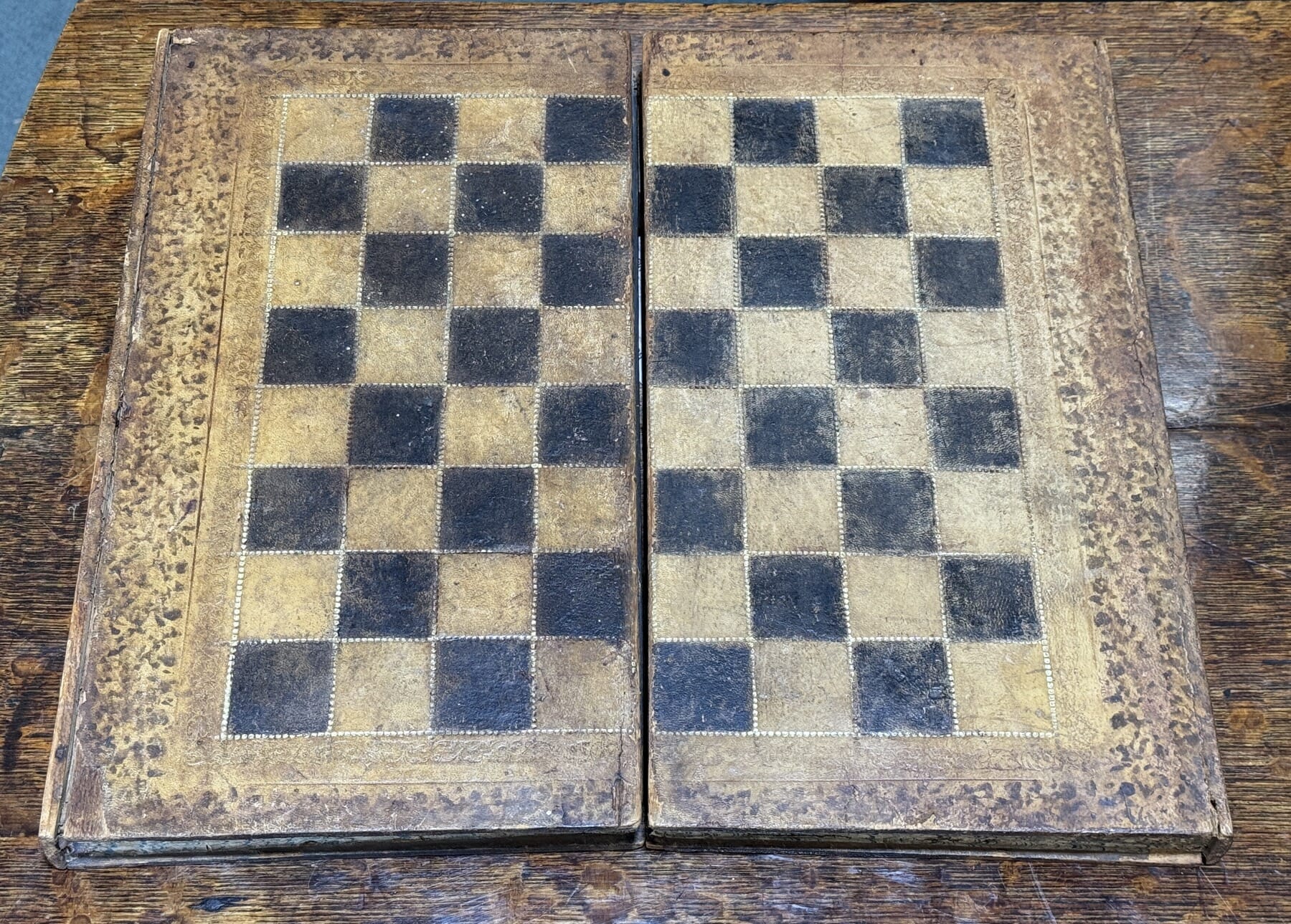 Ebony & Boxwood Backgammon-Chequers in Box, late Victorian c.1900