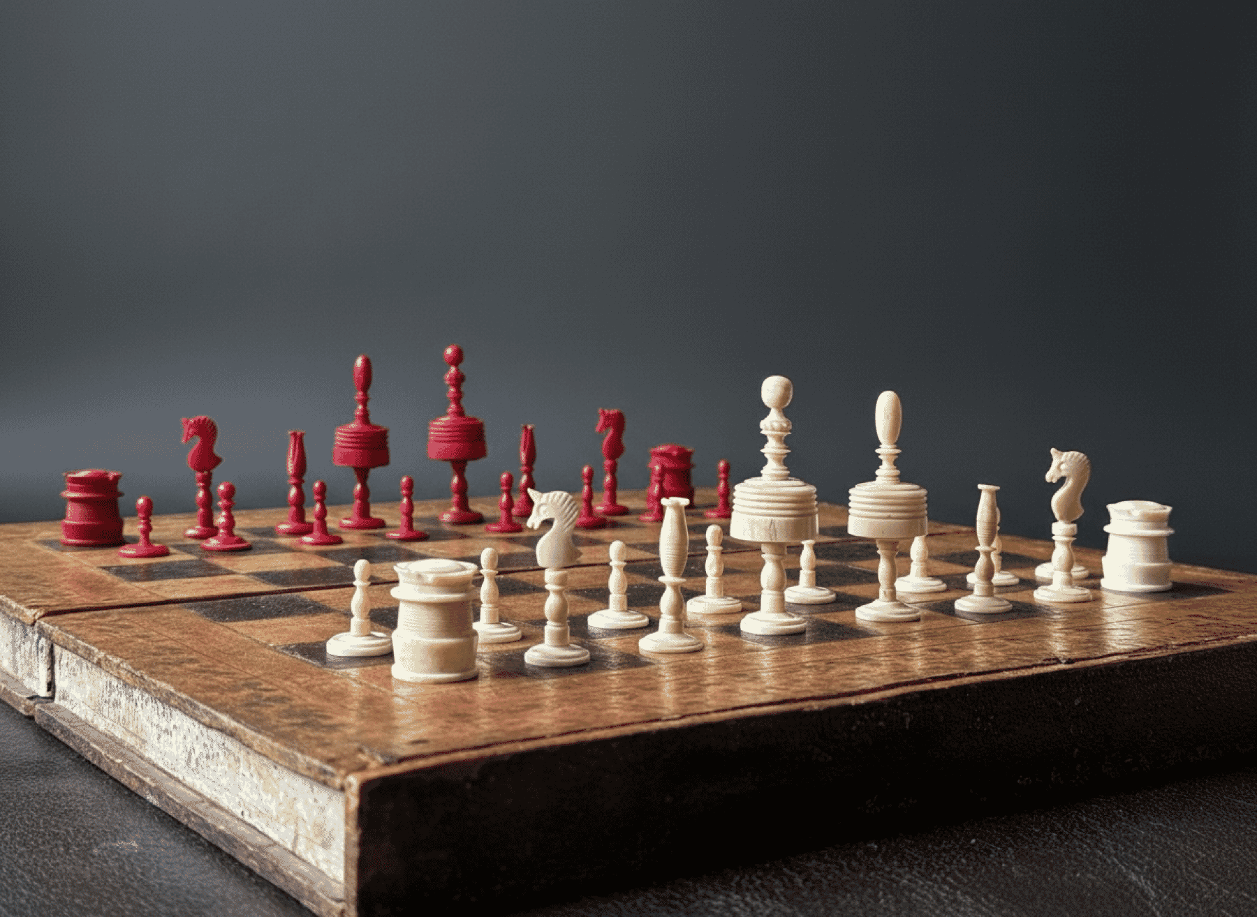 Napoleonic Prisoner-of-War carved bone Chess Set, in later Box, early 19th c.