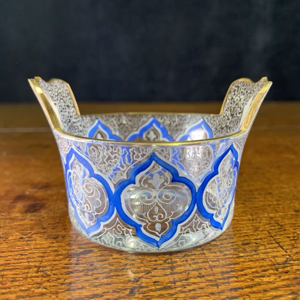 Small glass bucket shaped dish, Eastern style decoration, possibey Moser c. 1860