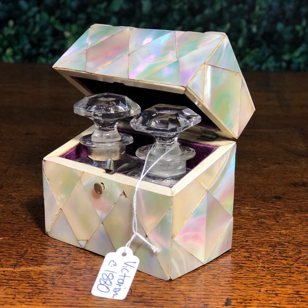 Victorian twin perfume bottles in pearl casket, c. 1880