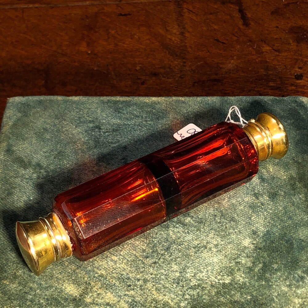 Victorian Ruby Glass perfume bottle, silver mounts, c. 1870