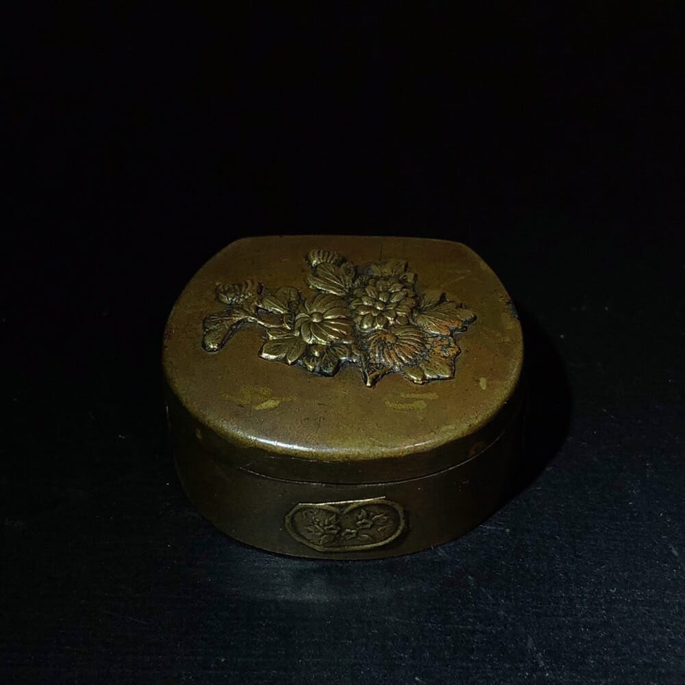 Small Japanese brass box, embossed flowers, c. 1900