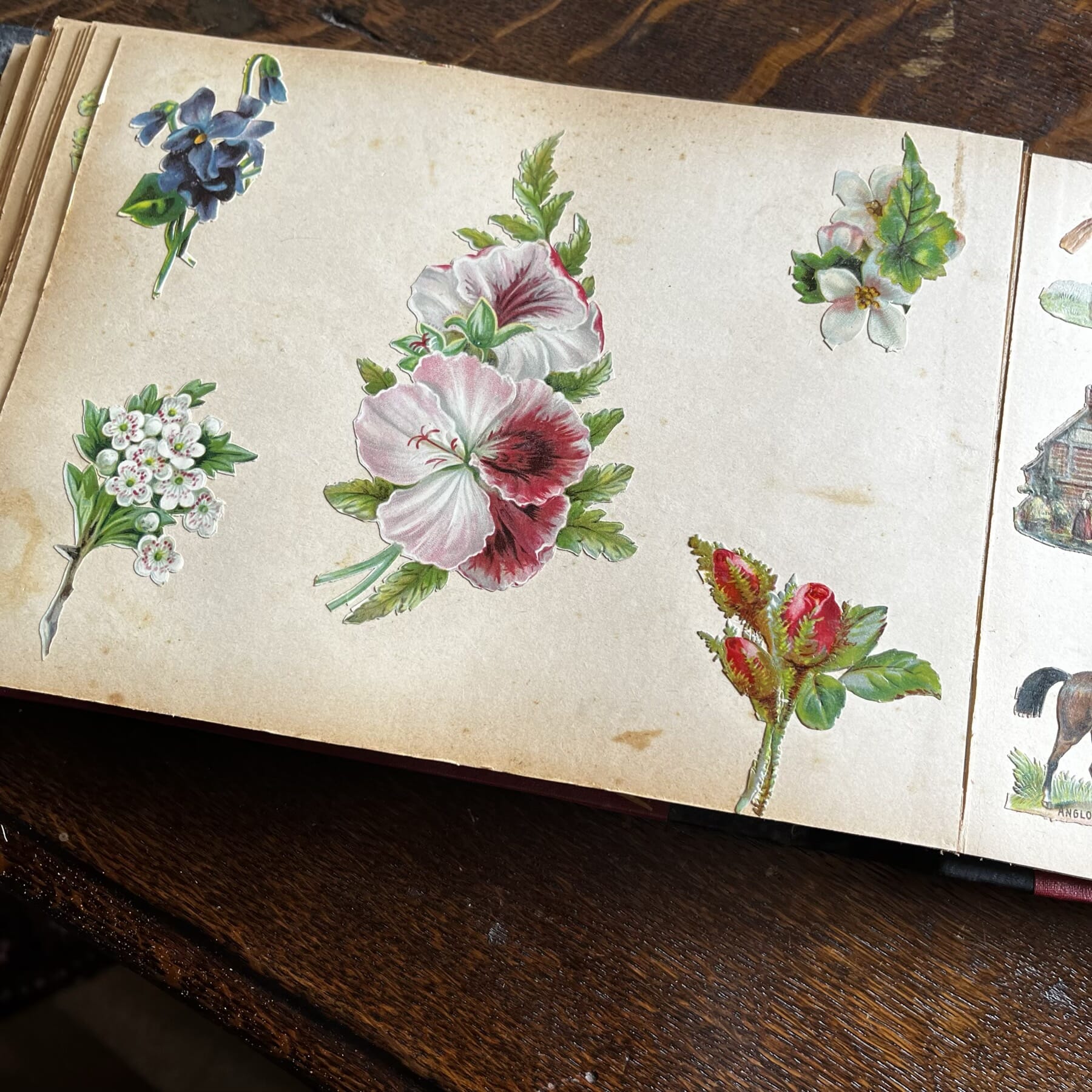 Superb Victorian scrap book, 47 pages with soldiers, horses, dogs, flowers & scenes, c. 1875$580.00 AUD#1028932View item