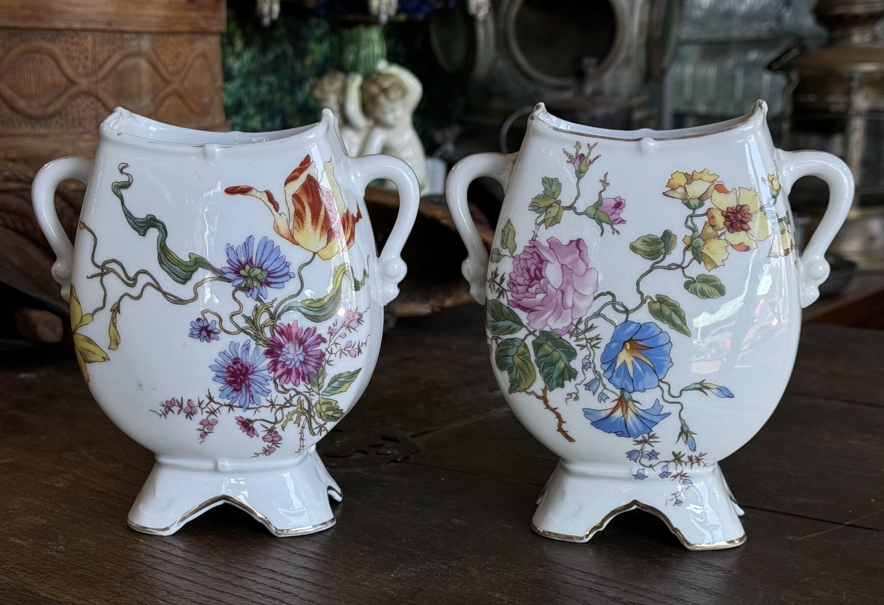 Pair of Limoges vases with colourful flower groups, Redon c. 1875