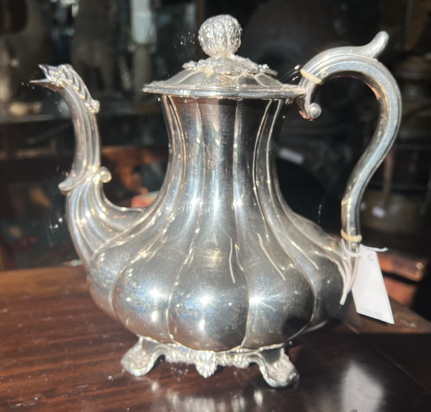 Very early electroplate melon shaped coffee pot, C 1840