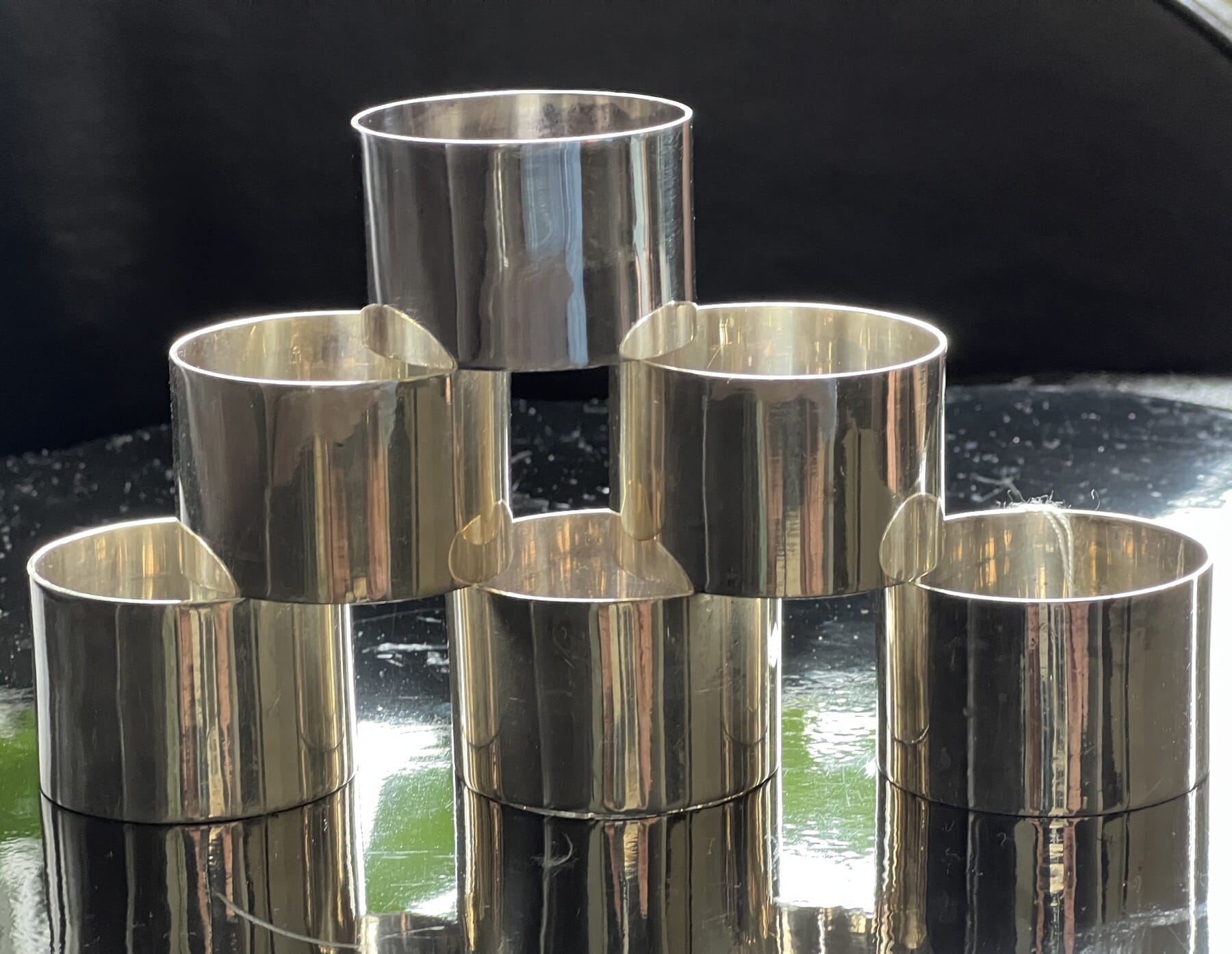 Set of 6 electroplate napkin rings, plain, c. 1900