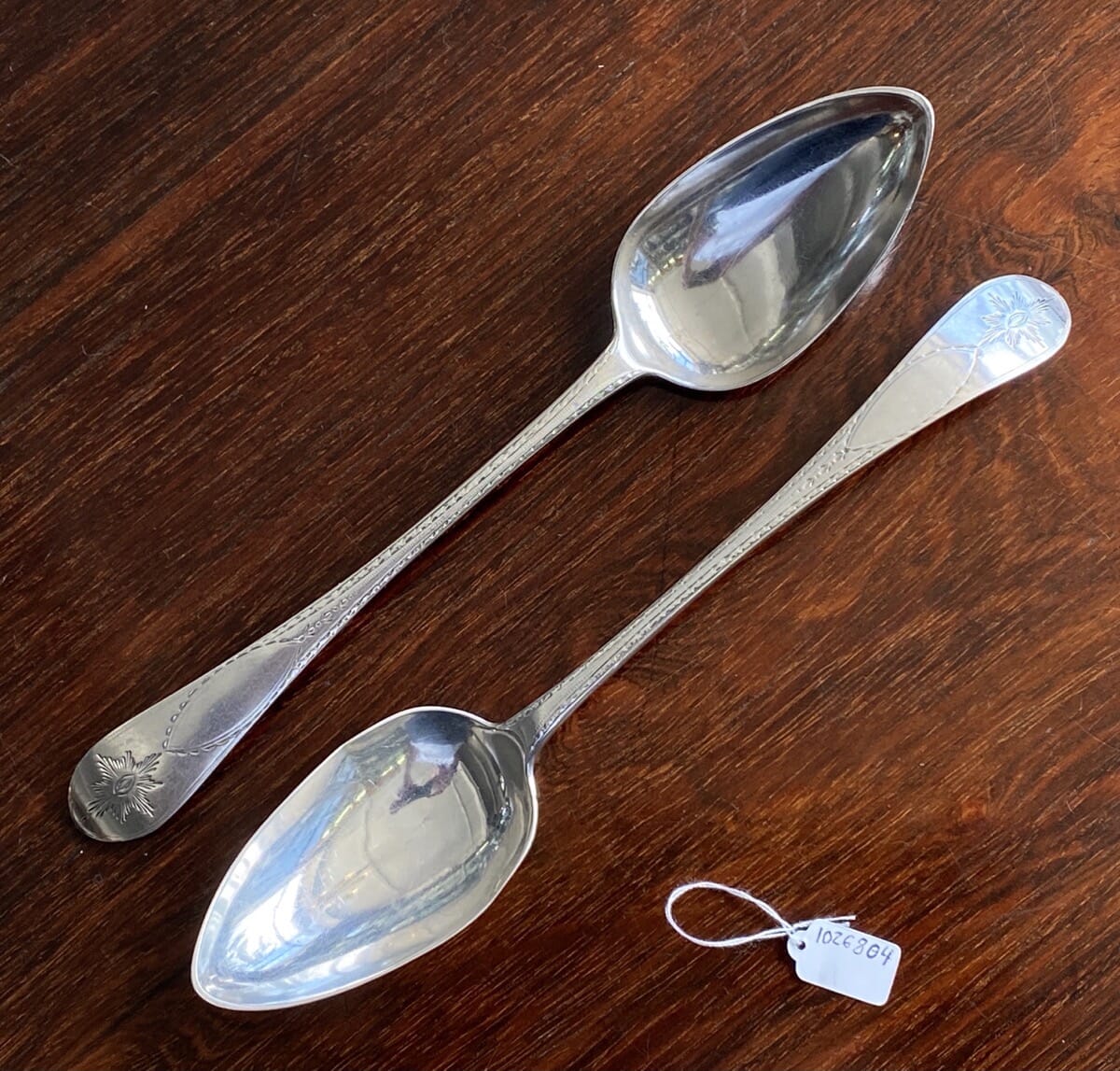 Pair of Scottish Sterling Silver Table Spoons,Bright Cut, Alexander Henderson, Edinburgh 1801