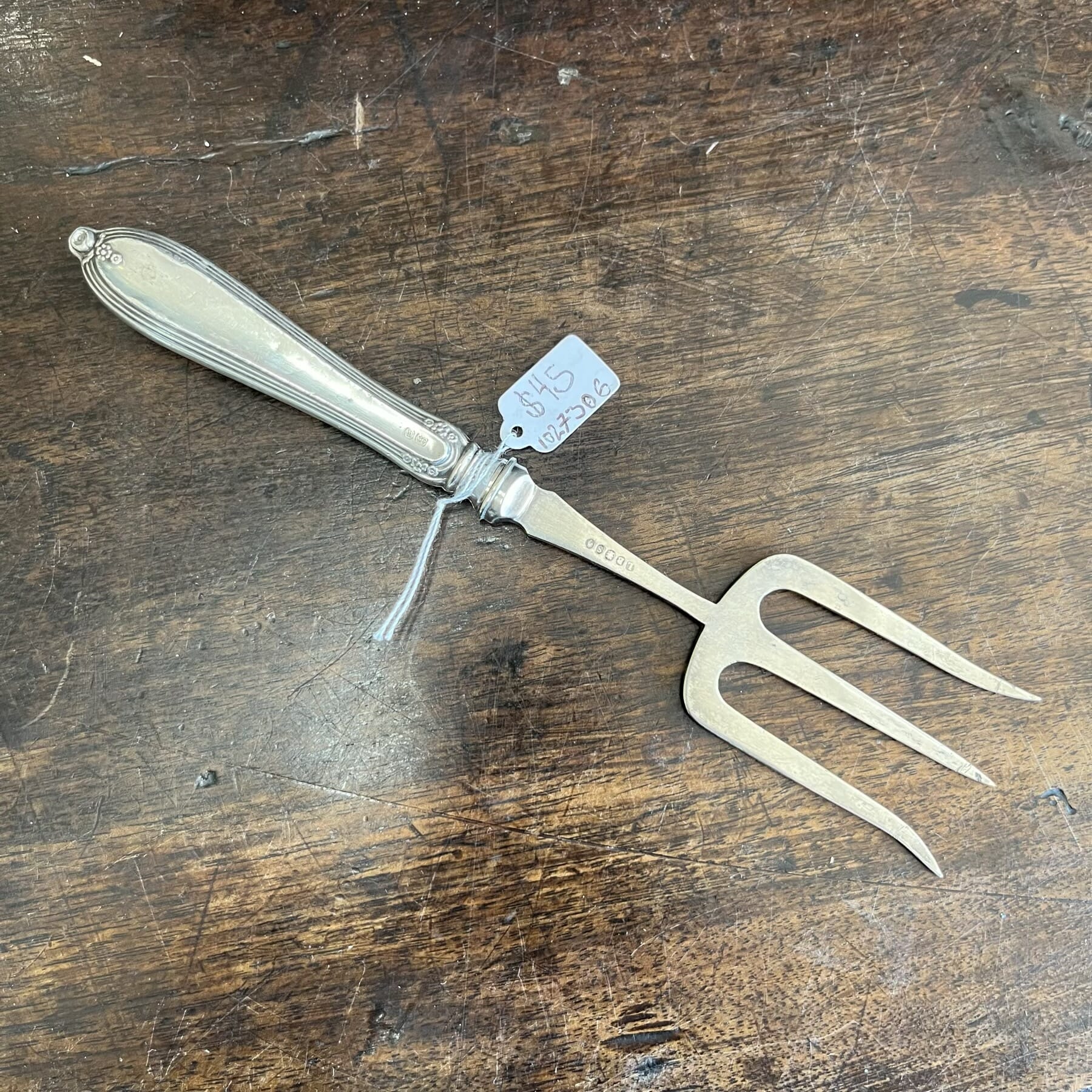Boxed pair of pearl-handled silverplate pickle forks, c. 1890