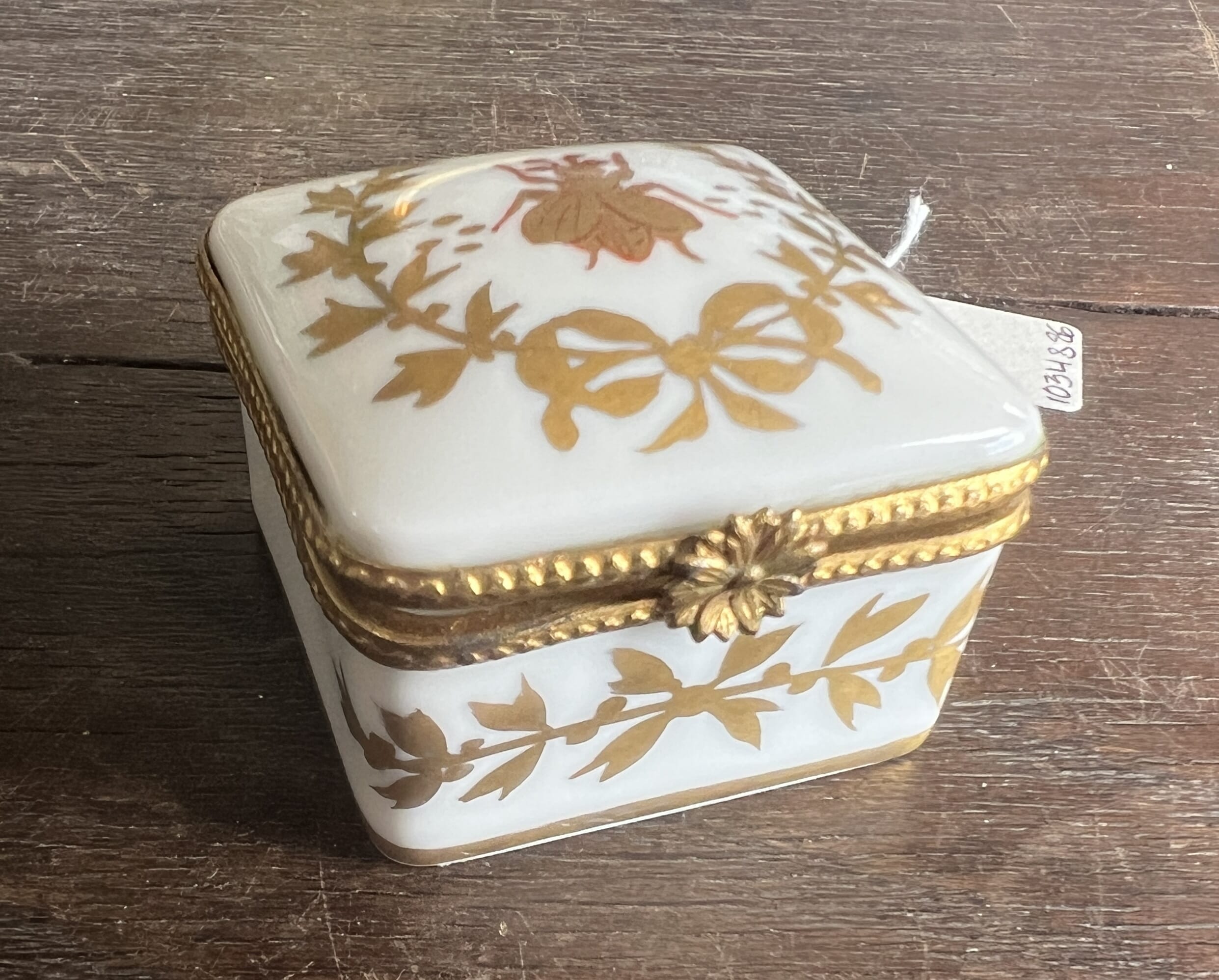 Napoleonic Limoges trinket box with gilt bee decoration , 20th C