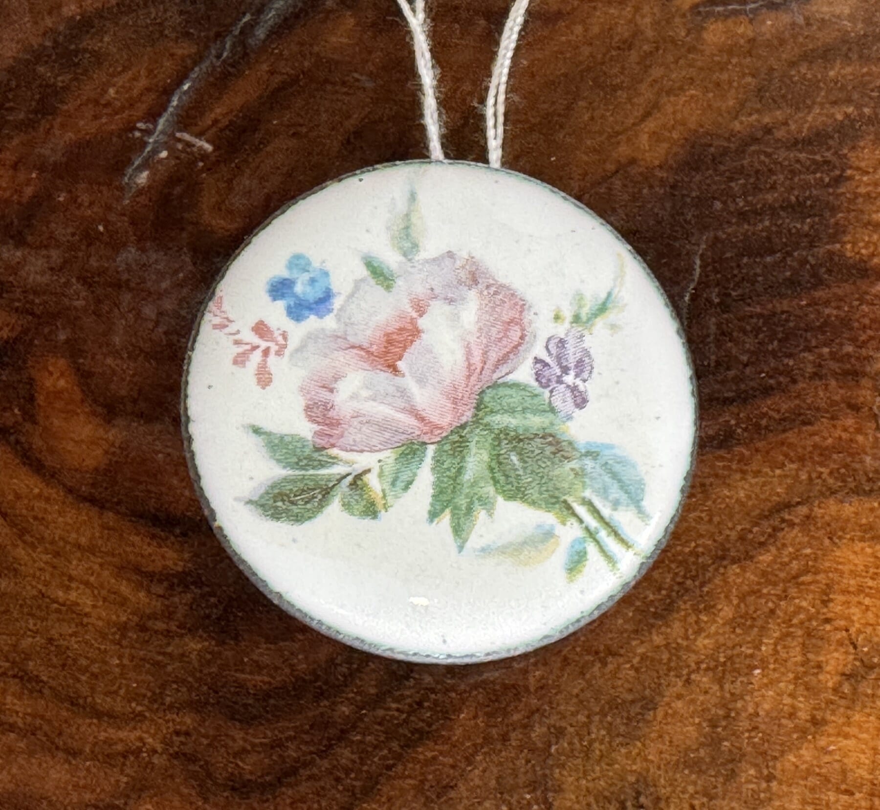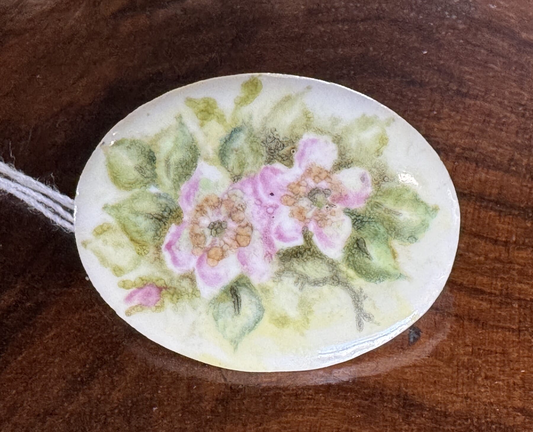 Hand Painted ‘Apple blossom’ porcelain plaque brooch, mid-20th c.