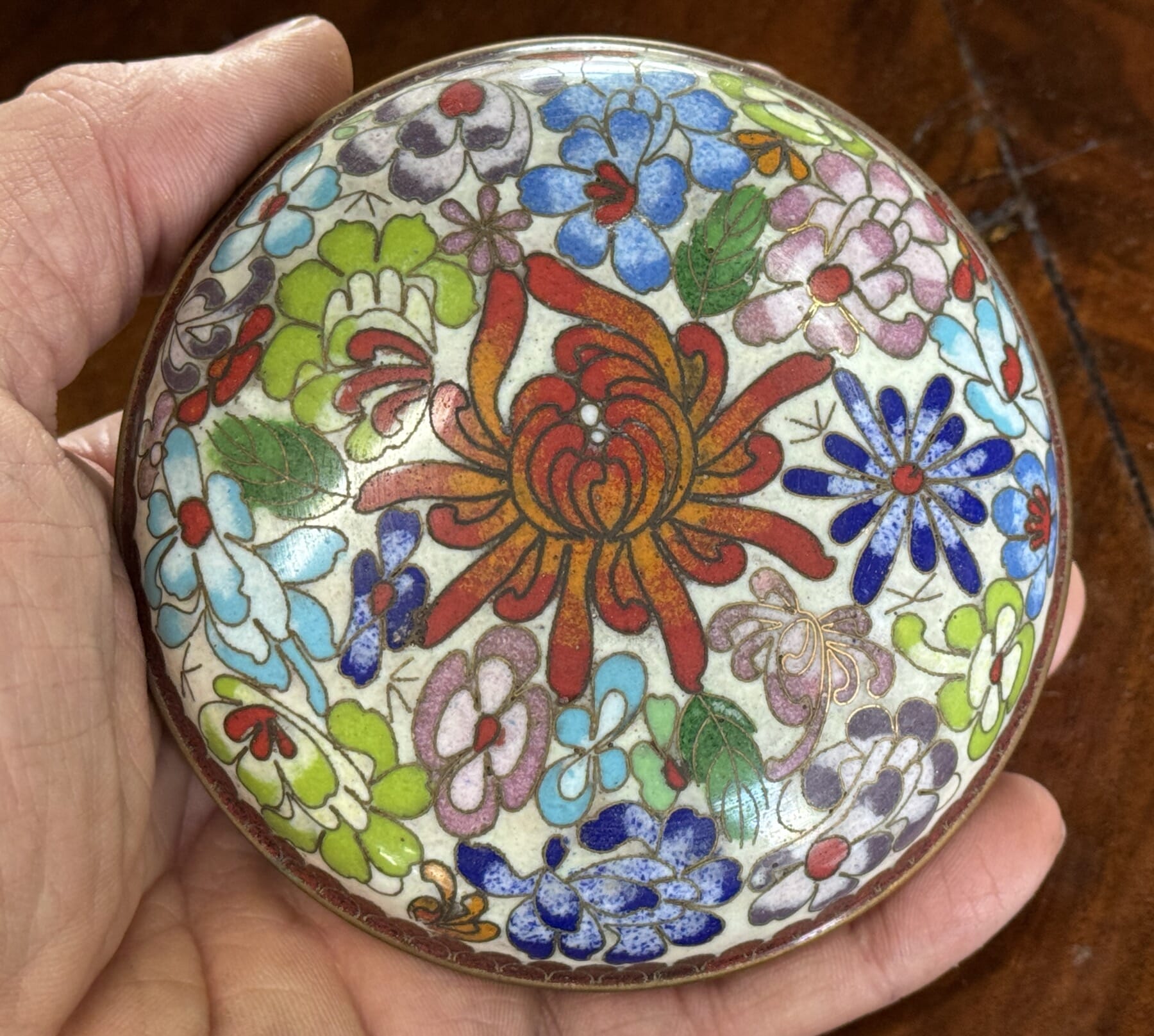Chinese Cloisonné seal-wax box, flowers, 20th century
