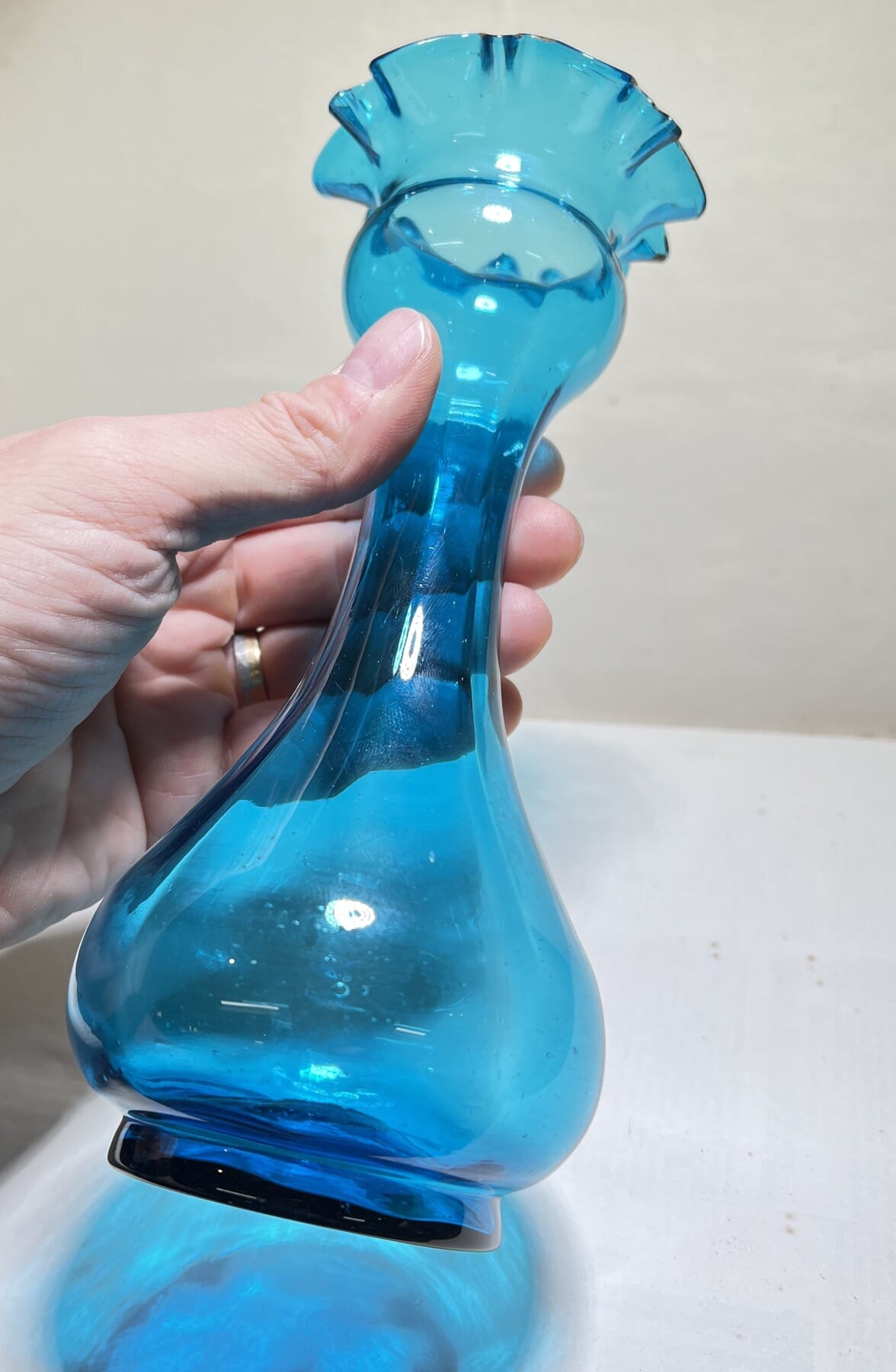 Victorian brilliant turquoise Hyacinth vase, C.1880