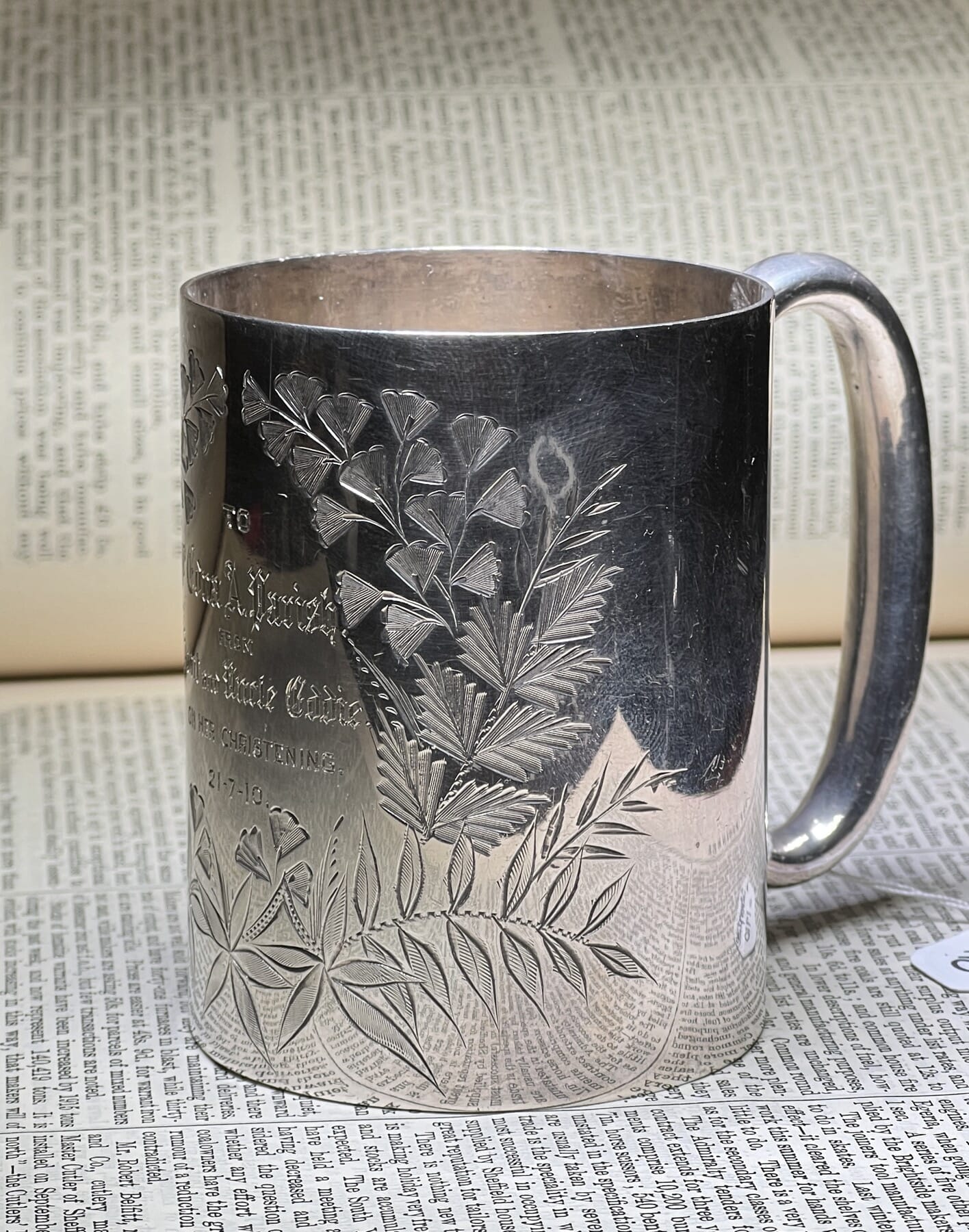 Edwardian silverplate mug with ferns & inscription ‘To Edna A.Parish’, c. 1910