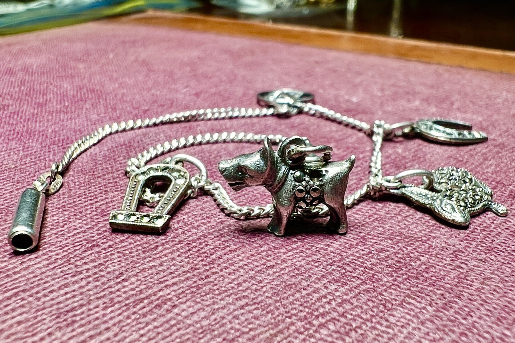 Continental .835 Silver & Marcasite charm bracelet C.1910