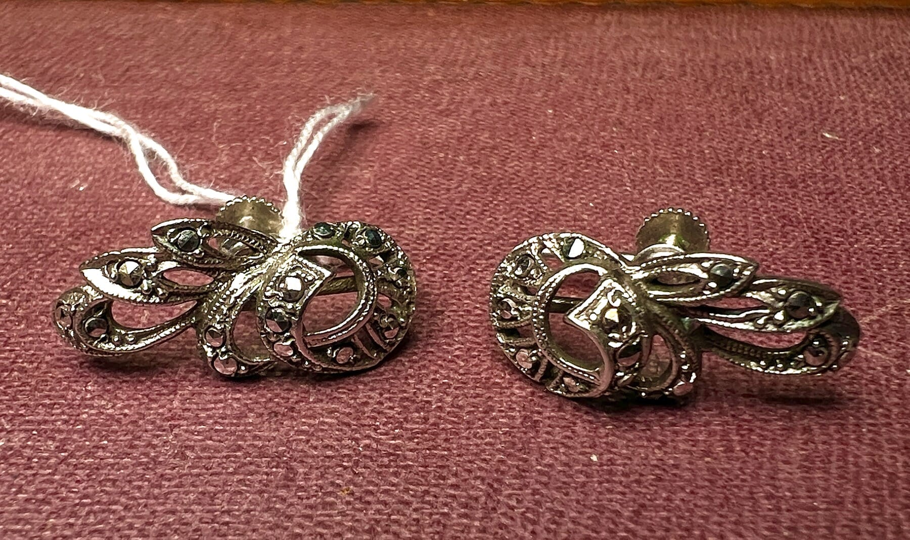 German Silver & Marcasite scroll earrings, c.1910