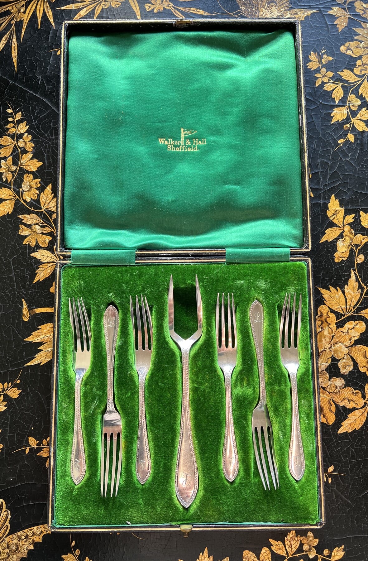 Boxed Walker & Hall silverplate fork set, c. 1910Sold#1029629View item