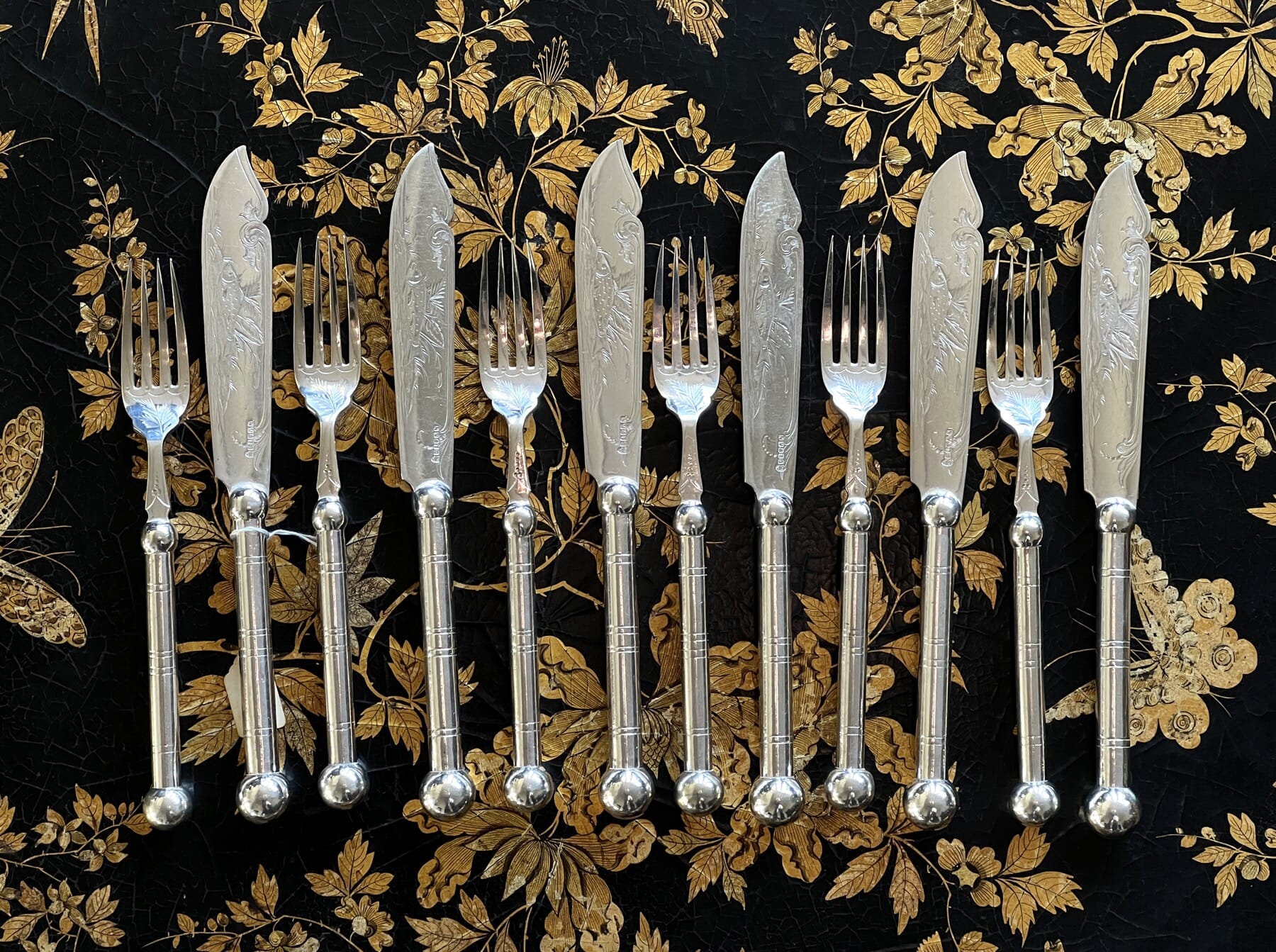 Stylish set of Victorian pearl handled knife/forks, c. 1880$195.00 AUD#1029626View item