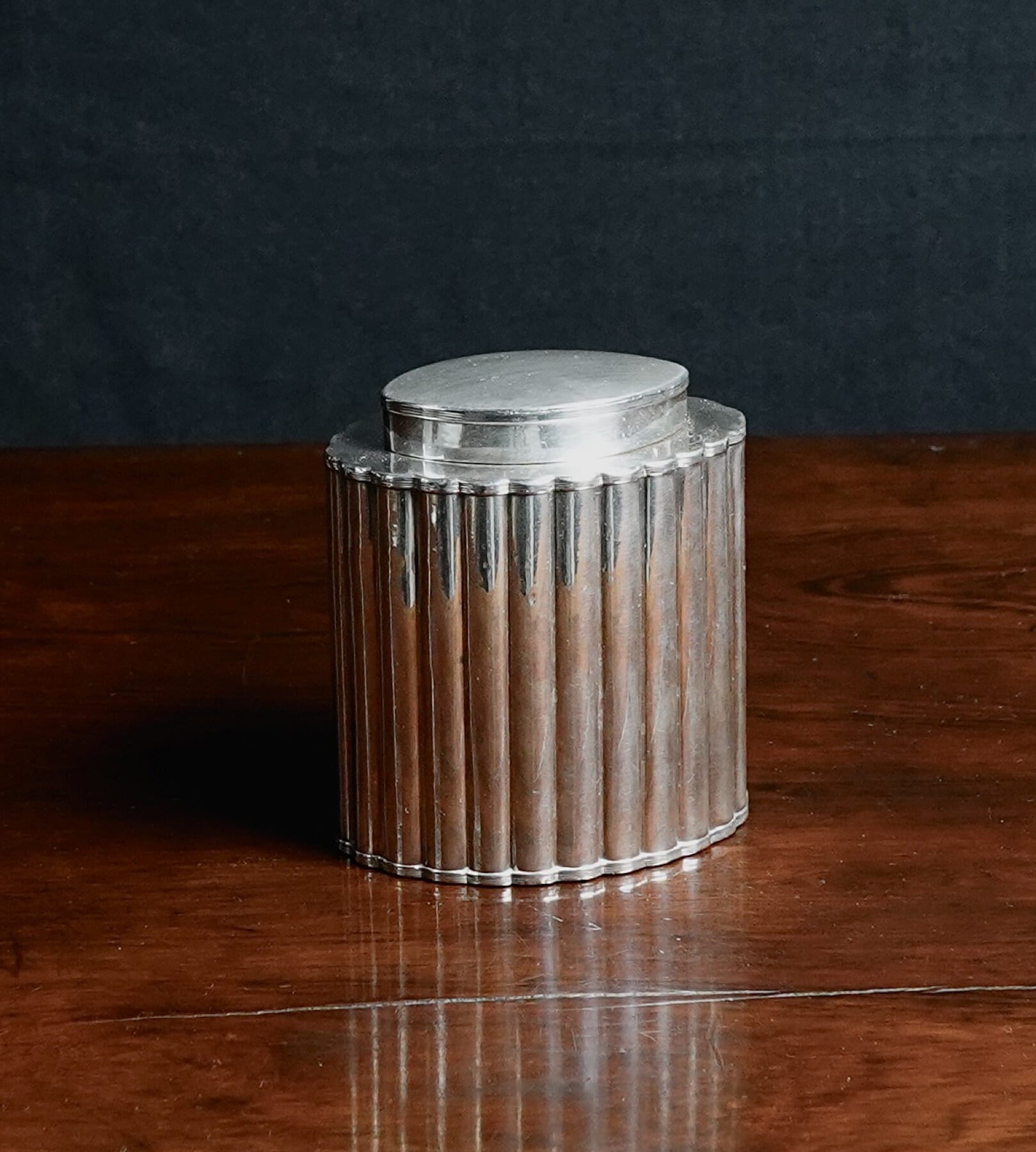 Old Sheffield Plate tea canister, fluted sides, c. 1790