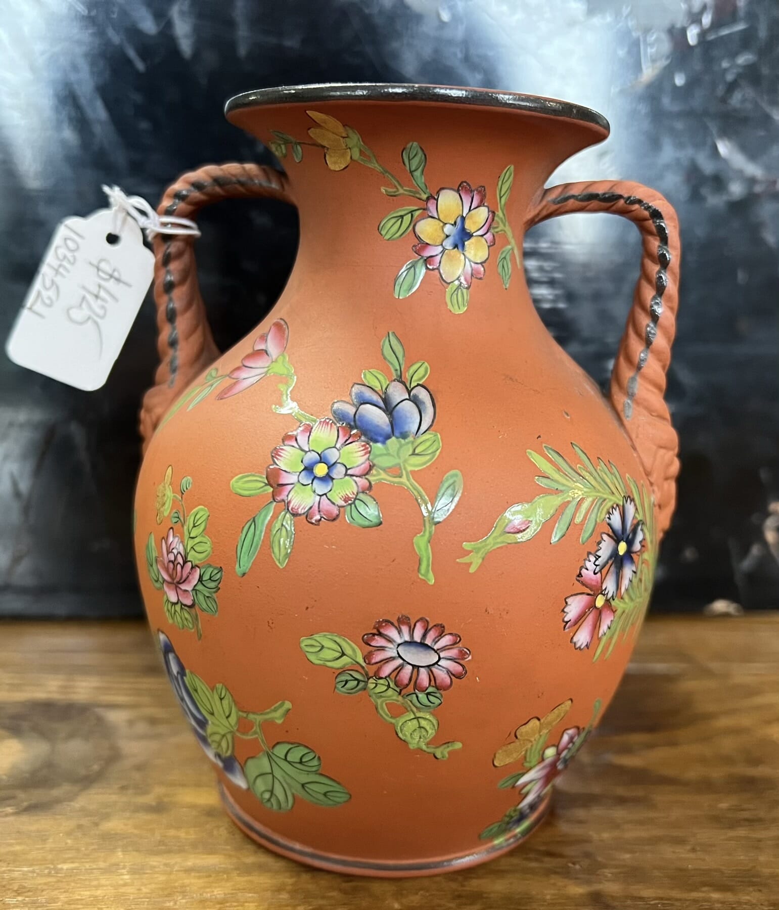 Wedgwood redware vase with enameled flowers, lions head handles, c.1815Sold#1034521View item