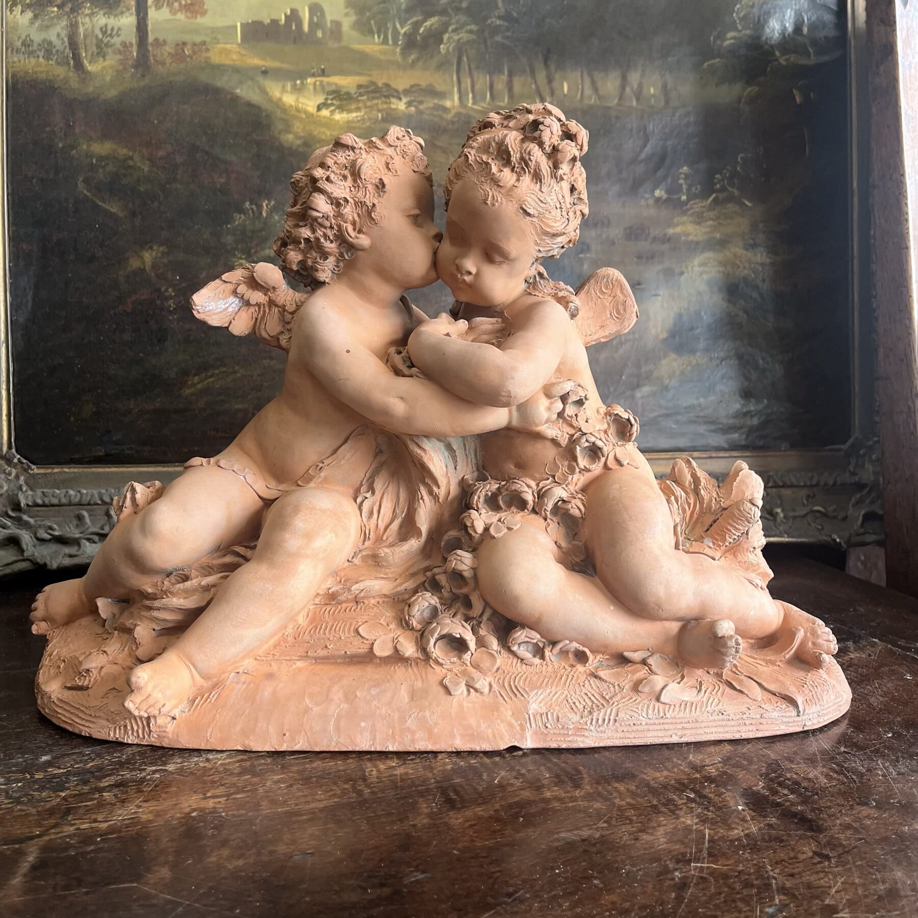 Fernand Cian, Paris, terracotta sculpture of cherubs, signed C.1920