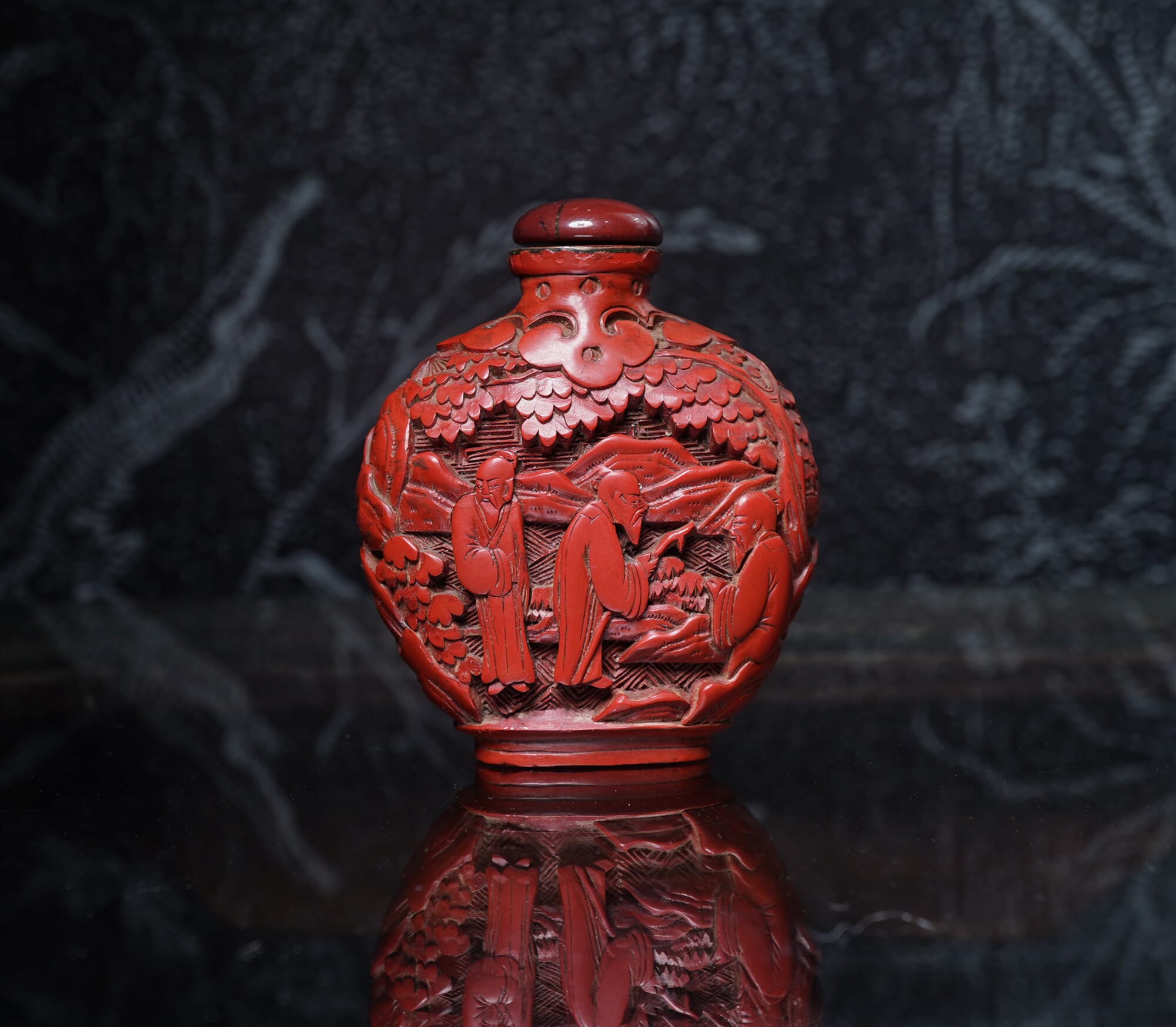 Bow coffee can, Peony + Rock in thick raised enamels, c. 1752
