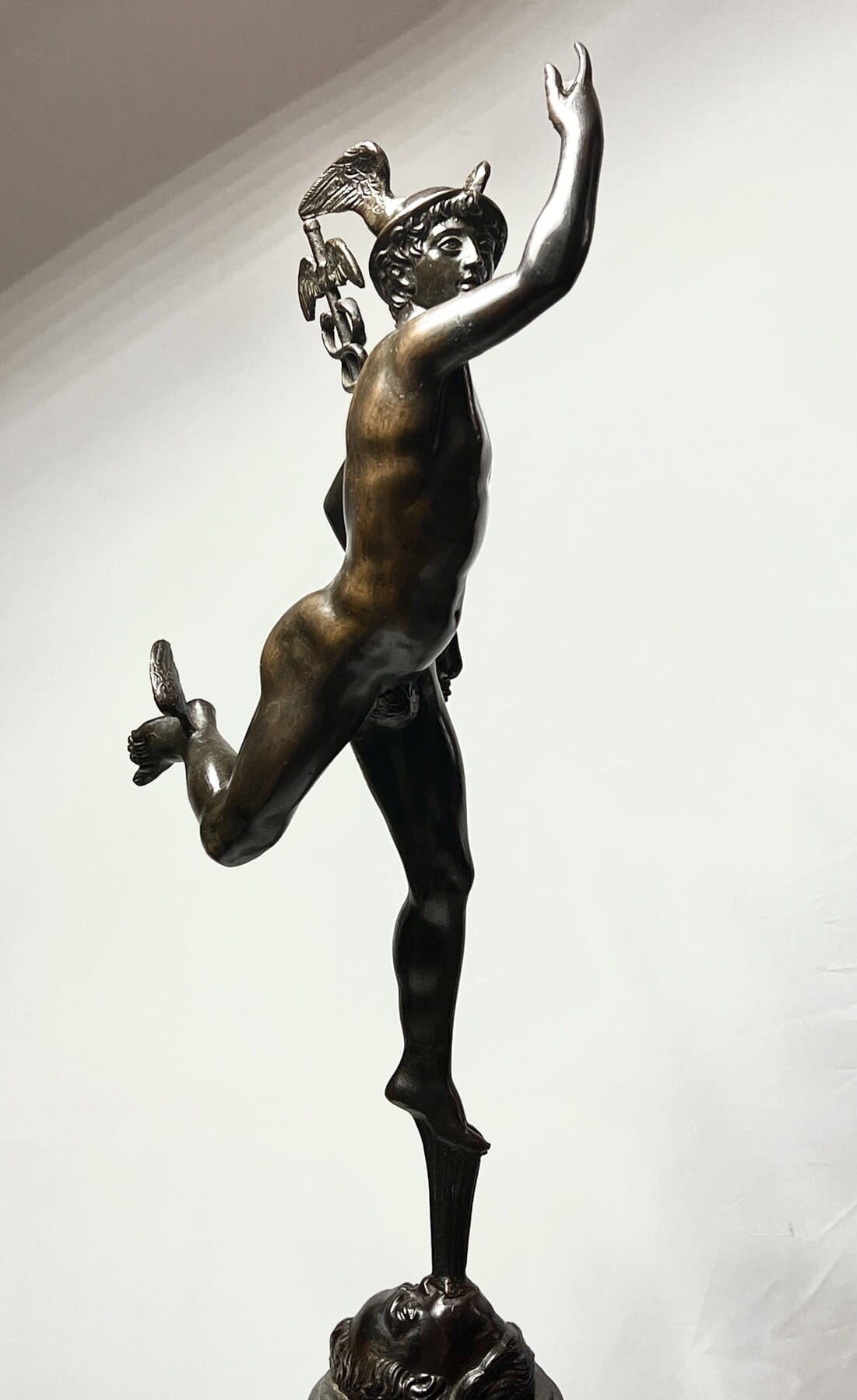 Grand Tour bronze of ‘Mercury’, after Giambologna, on tall marble plinth, 19th c.
