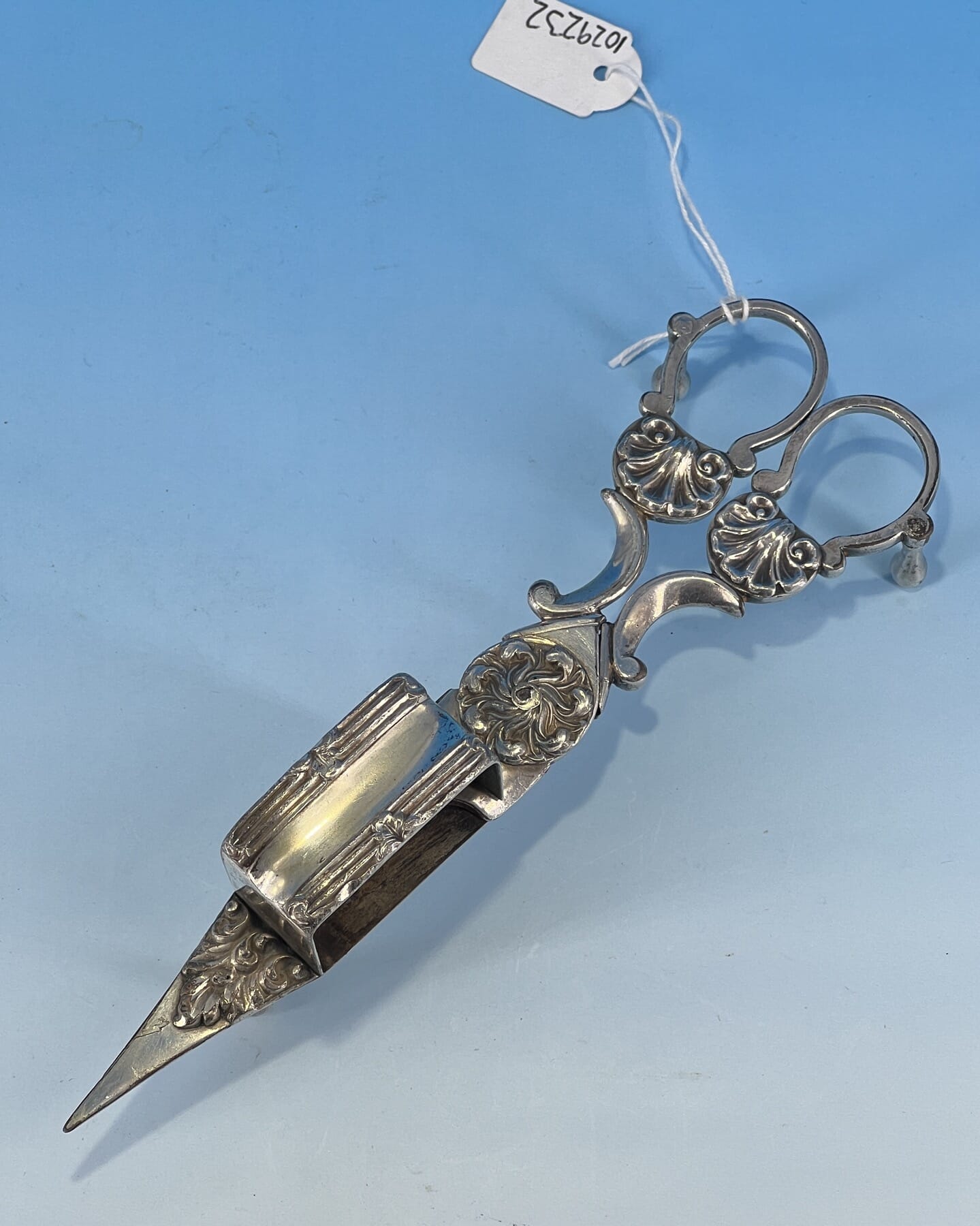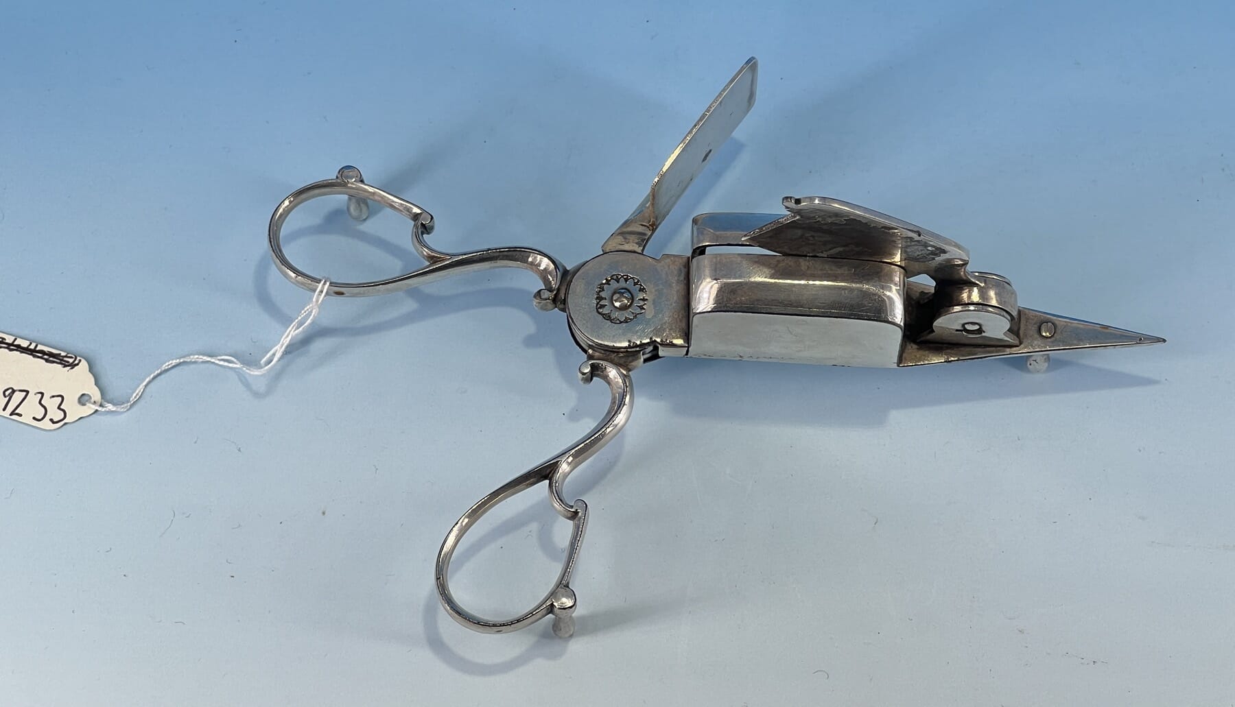Close Plate steel candle snuffers with patented retracting mechanism, c.1780