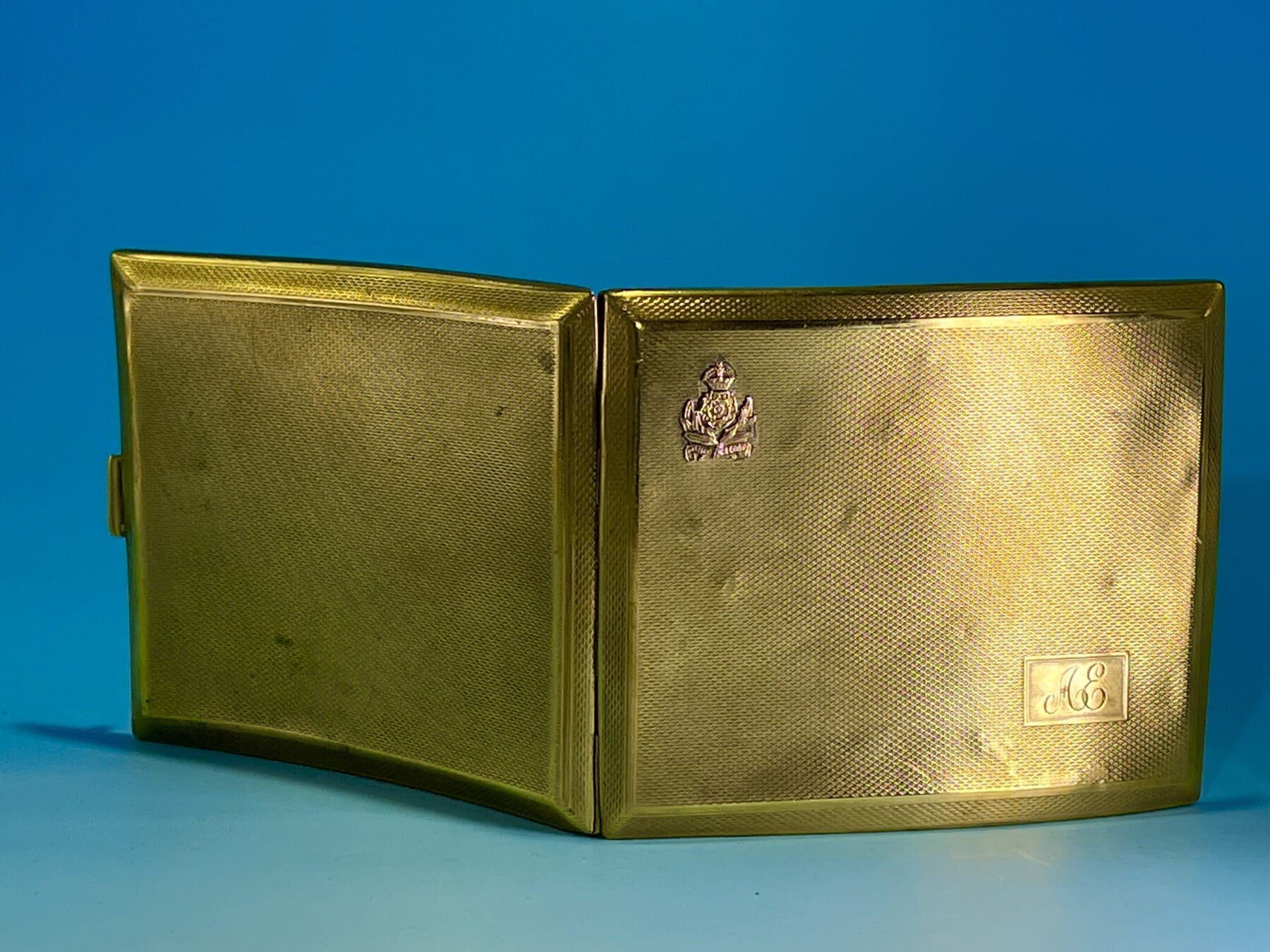 Gold tone card case with rose gold ‘Intelligence Corps’ insignia, c.1940