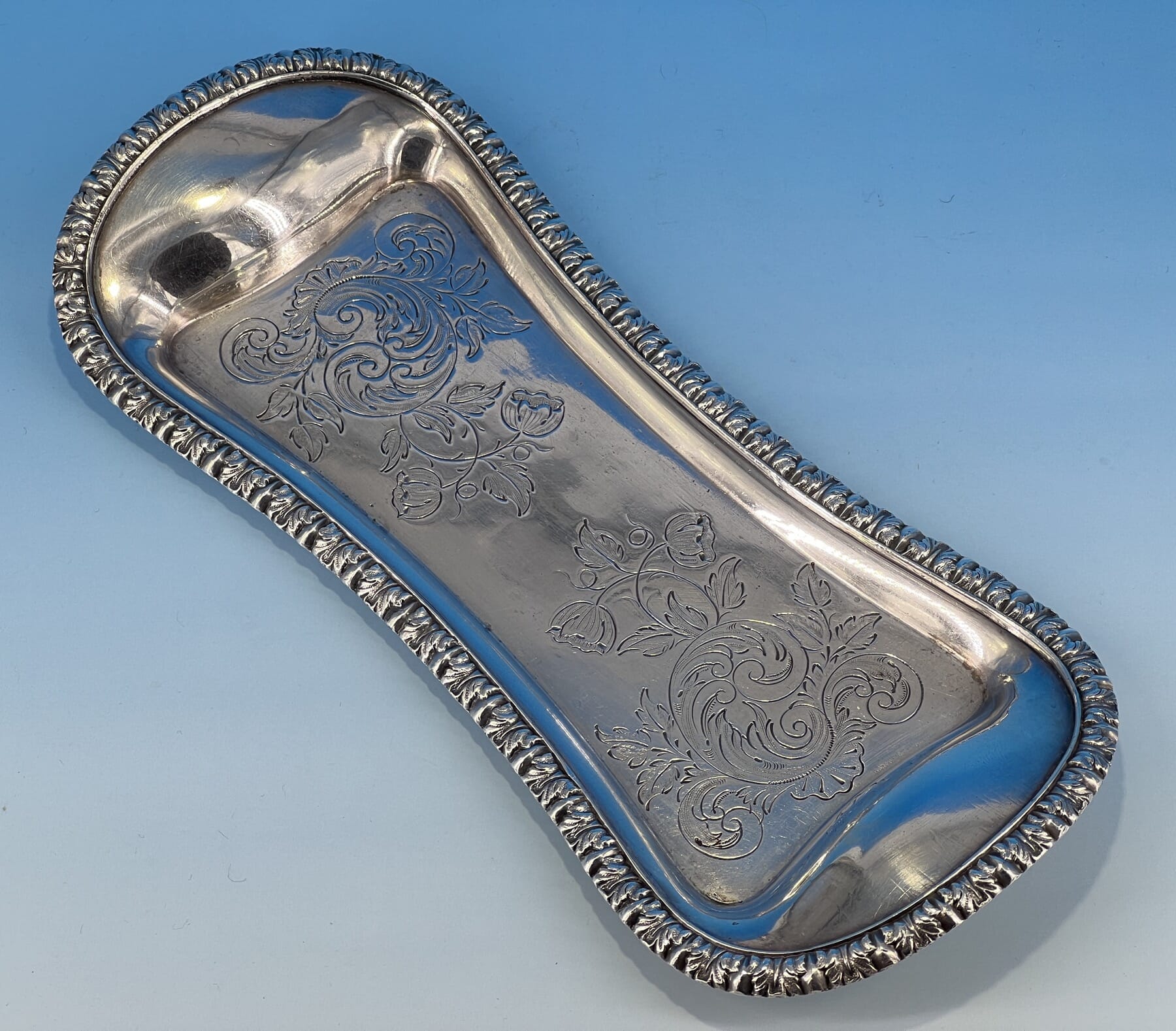 Old Sheffield Plate snuffer tray with engraved flowers, c.1820