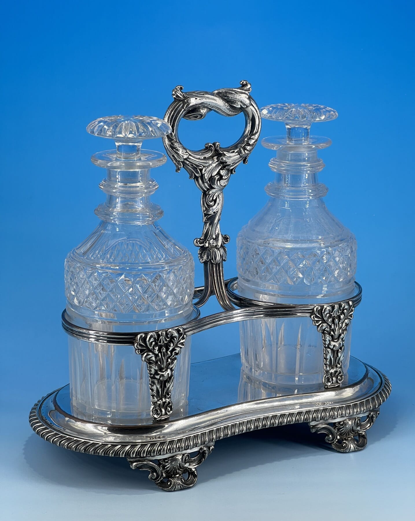Old Sheffield Plate double cruet with Georgian decanters, c. 1825