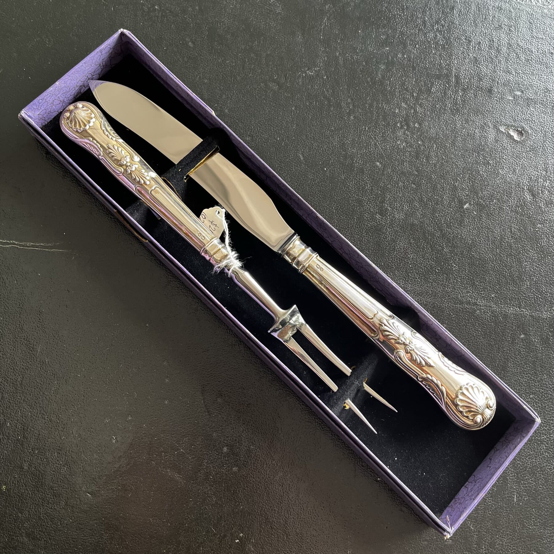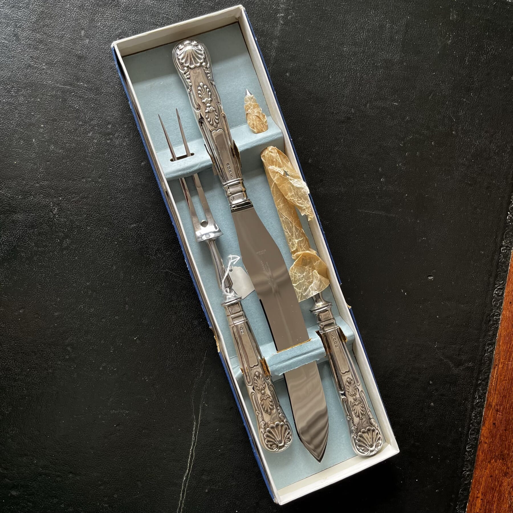 Sterling silver handled Kings Pattern Carving set, 1950