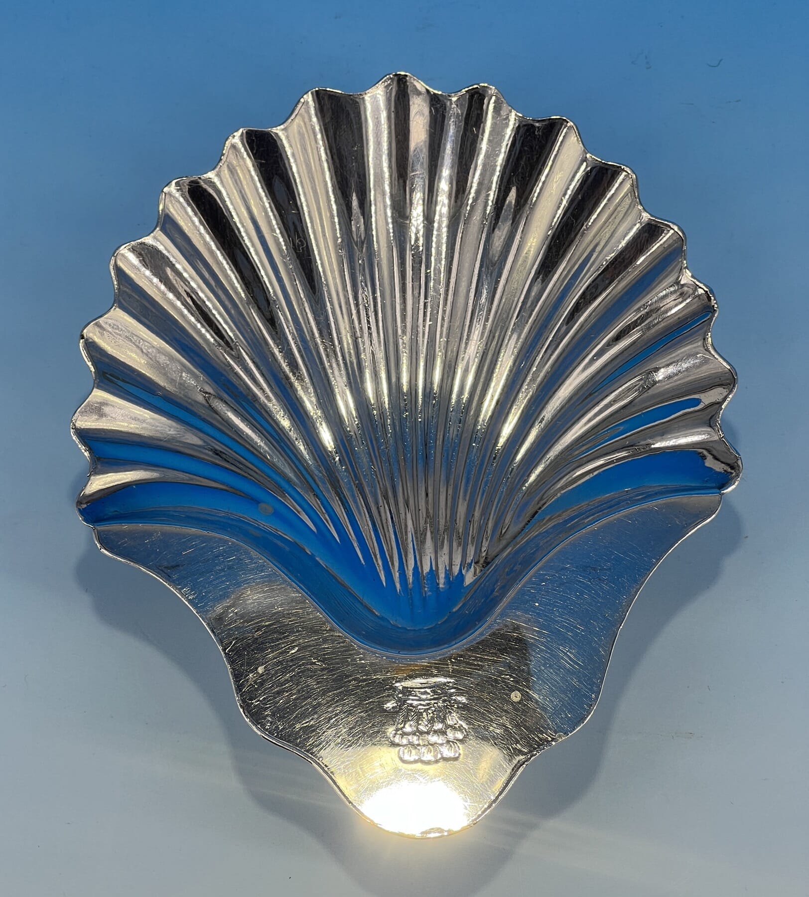 Old Sheffield Plate scallop shape dish with crest, c. 1800