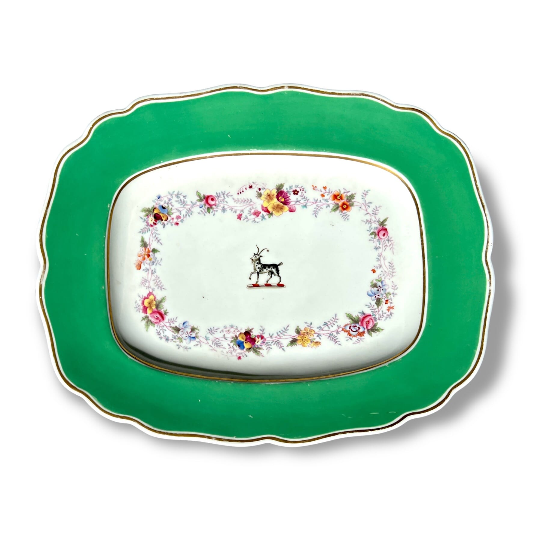 Chamberlain’s Worcester armorial meat platter, green border with flowers & goat crest, c.1830$385.00 AUD#1027788View item