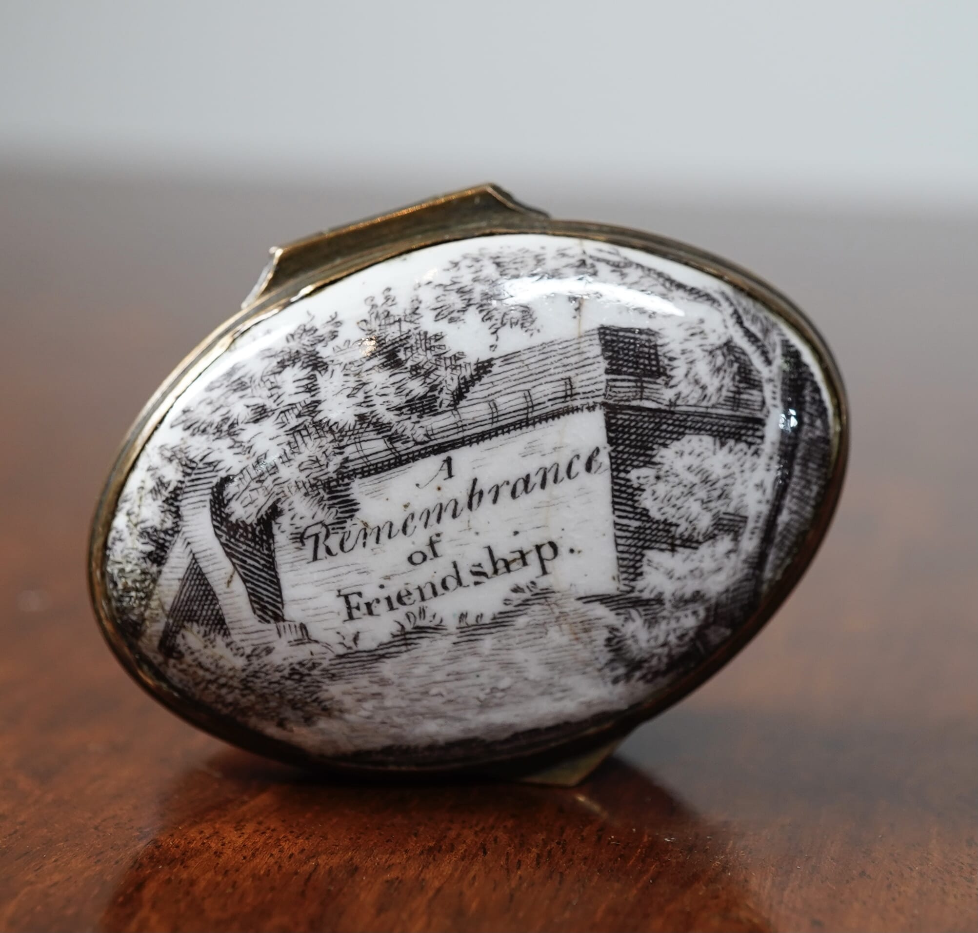 English enamel patch box, ‘A Remembrance of Friendship’ print, c. 1790