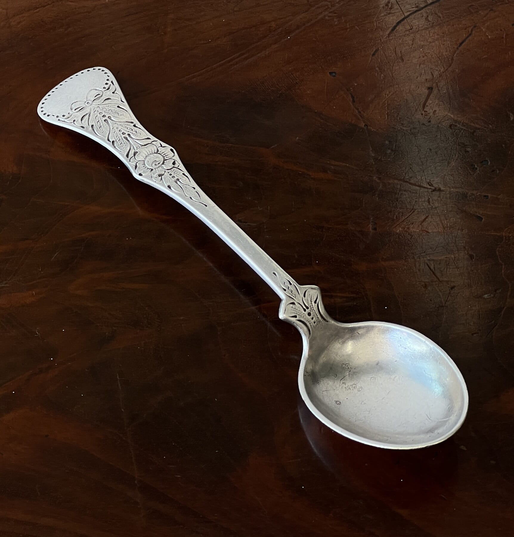Norwegian .830 Silver teaspoon, ‘Flat Rose’ pattern, A.S. Carlsen, mid 20th c.
